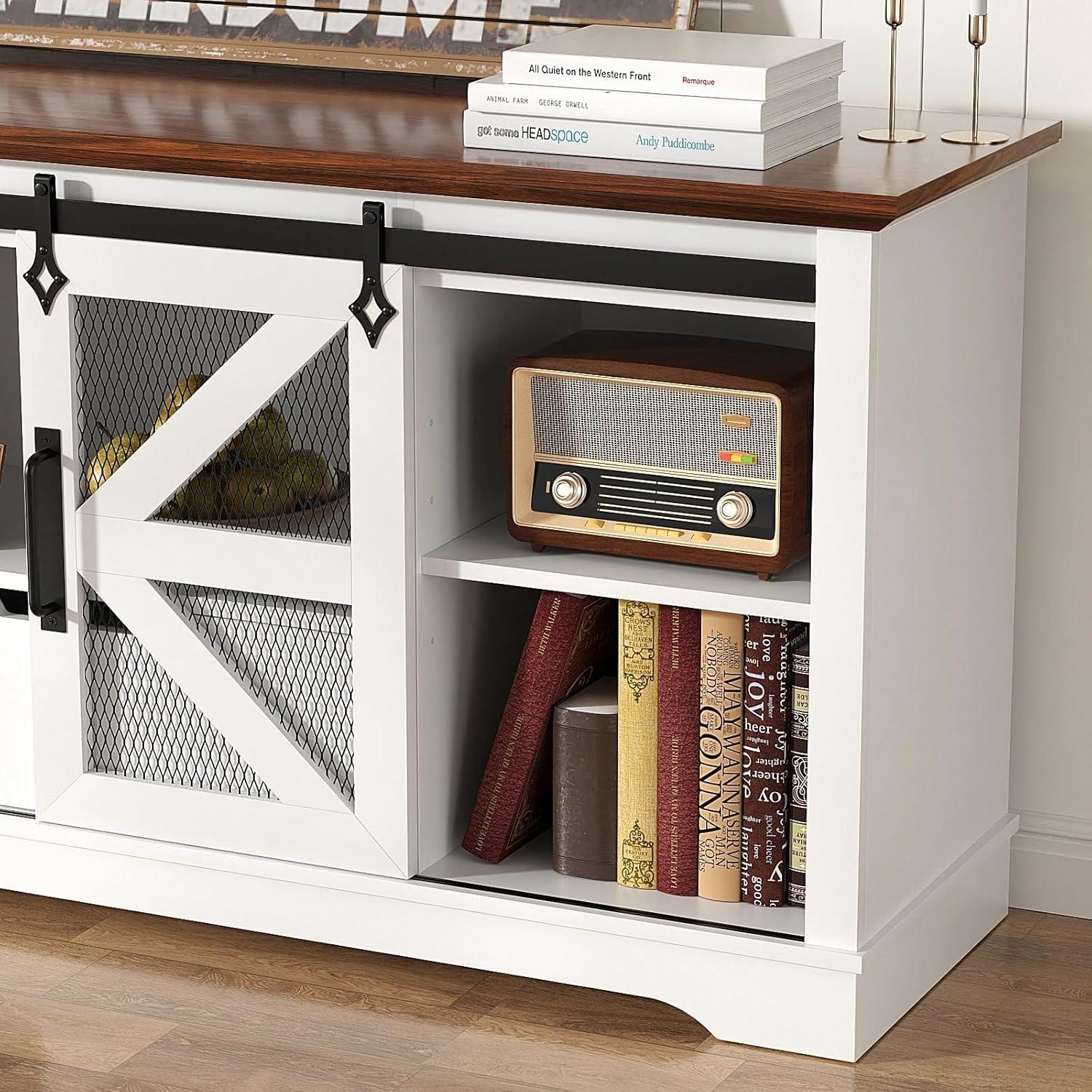 We find this entertainment center to be the ​perfect marriage ‌of rustic farmhouse charm ​and sleek contemporary design. Its clean white finish paired with a richly⁢ textured brown tabletop creates a striking contrast that⁤ effortlessly complements a variety of interior styles-from industrial‍ lofts to cozy living rooms. The distinctive barn door accents and metal arrowhead details add unique‍ personality without overwhelming the space,making this​ piece both a functional and stylish focal point in any room.