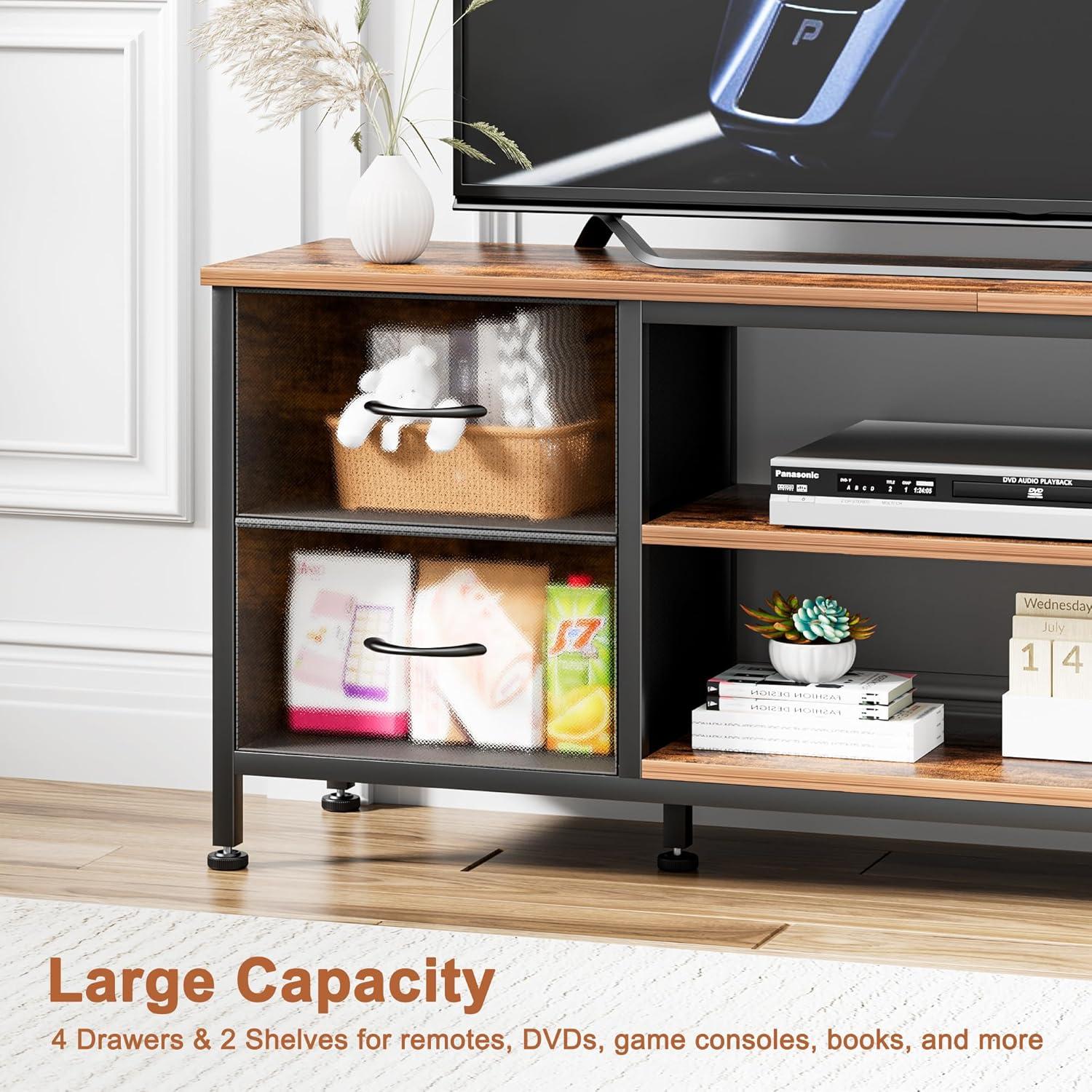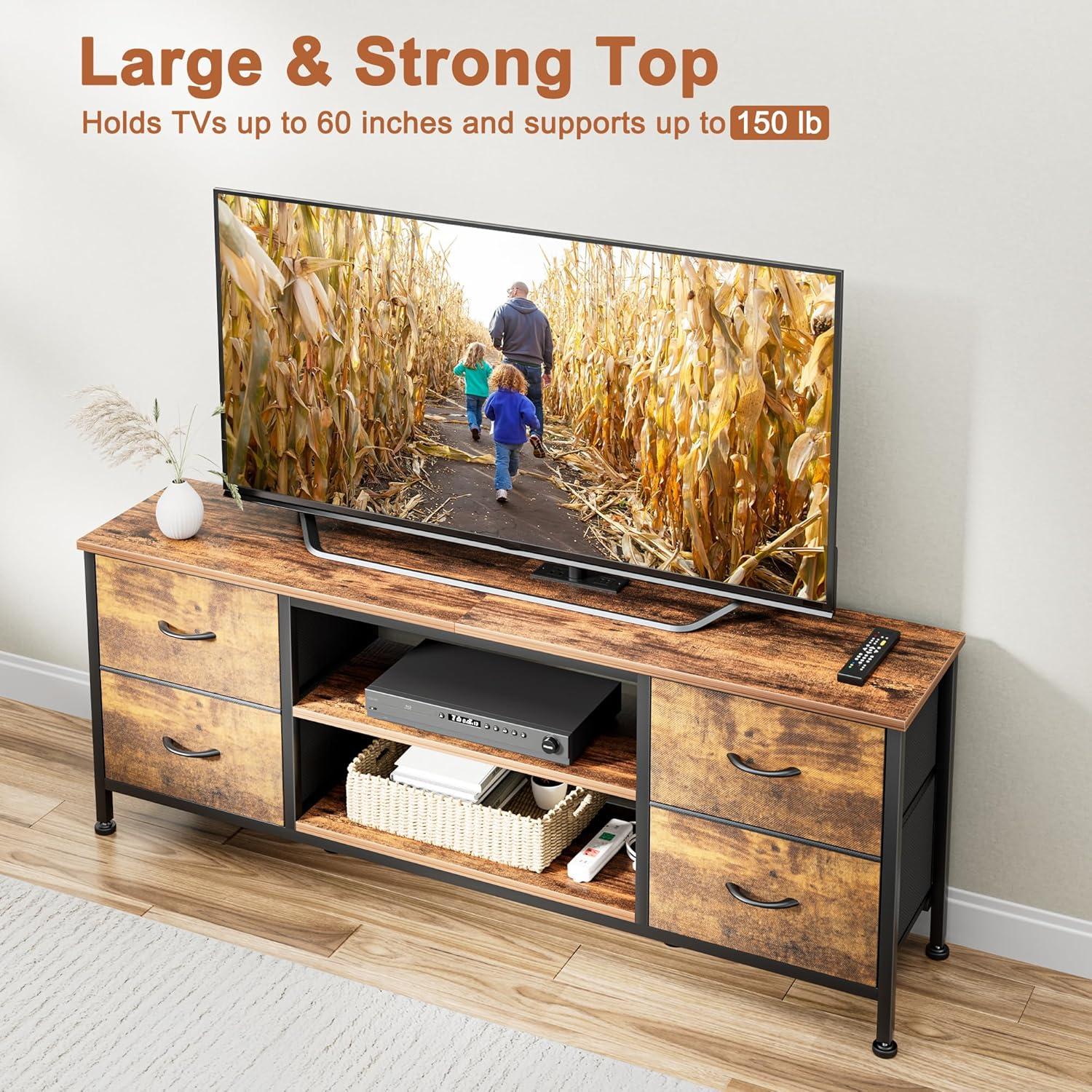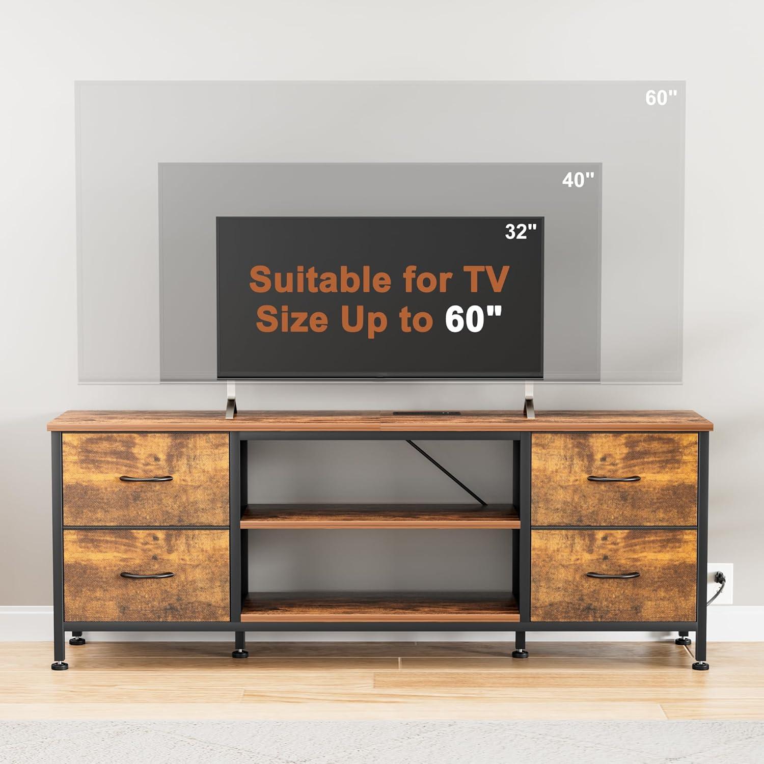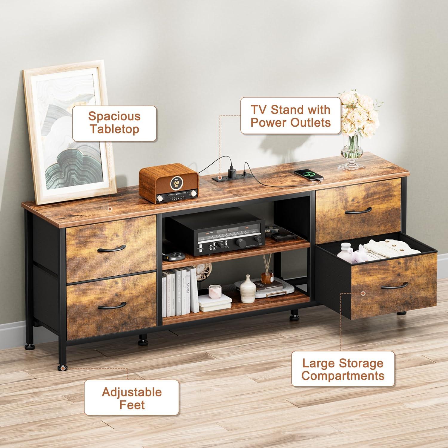 This media console table is an excellent choice for those who value both functionality and style in their living or bedroom spaces.If you’re someone who enjoys a clutter-free environment, the combination of spacious fabric drawers and open shelving offers versatile storage options that can neatly accommodate clothing, books, gadgets, and more. its built-in power outlets and USB ports make it especially ideal for tech-savvy users who need to charge multiple devices conveniently while keeping cables hidden and organized. Plus, its sturdy metal frame and FSC-certified wood top guarantee durability, supporting heavier decor items and electronics with ease.