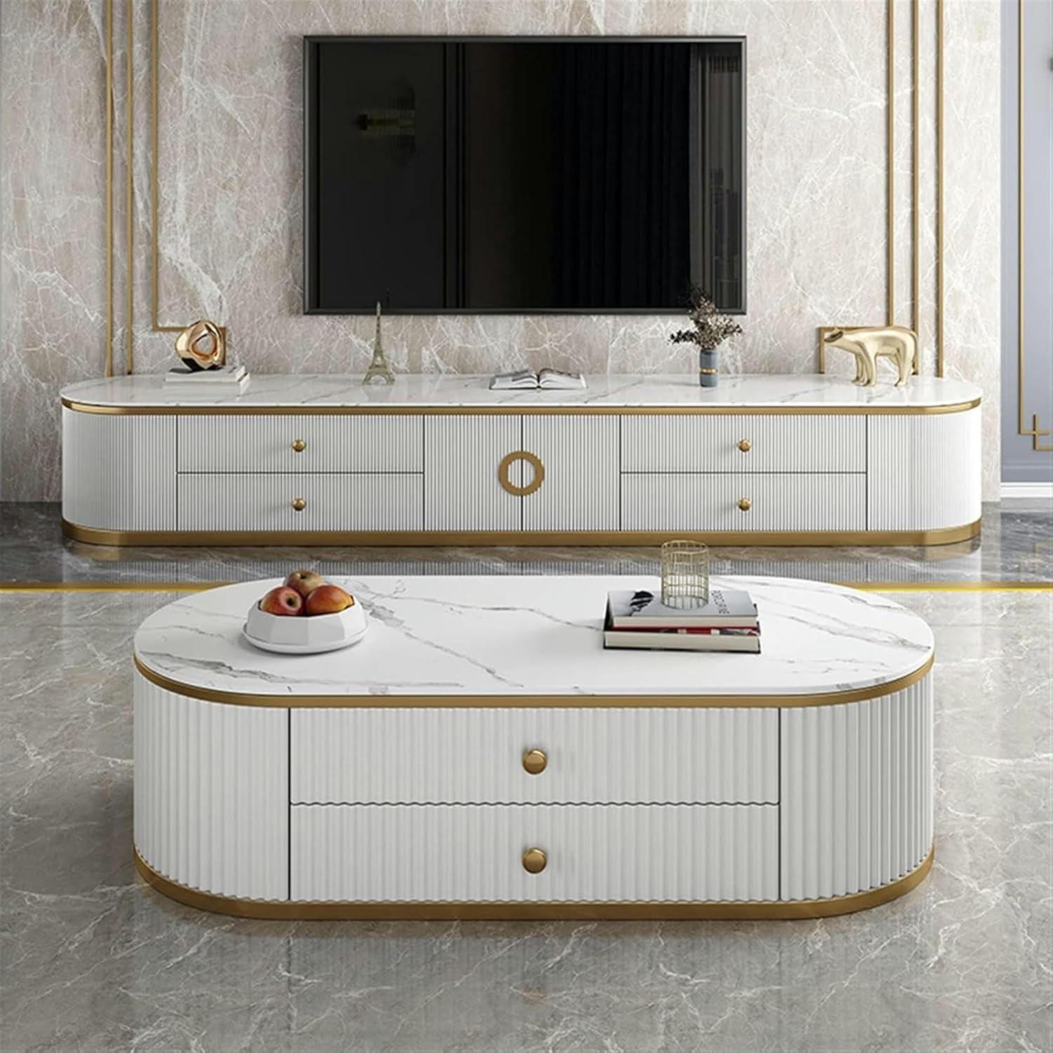 With a light and luxurious style,this piece effortlessly blends into any living room setting,adding an elegant yet understated charm. Its simple design ensures harmony with a variety of décor styles,from modern minimalism to classic sophistication. We appreciate how easy it is to clean, making maintenance a breeze in our busy daily routines. The versatility it offers is remarkable, as it can serve not only as a TV stand but also as a coffee table, side table, or even a specialty table at your entrance, adapting seamlessly to different spaces and needs.