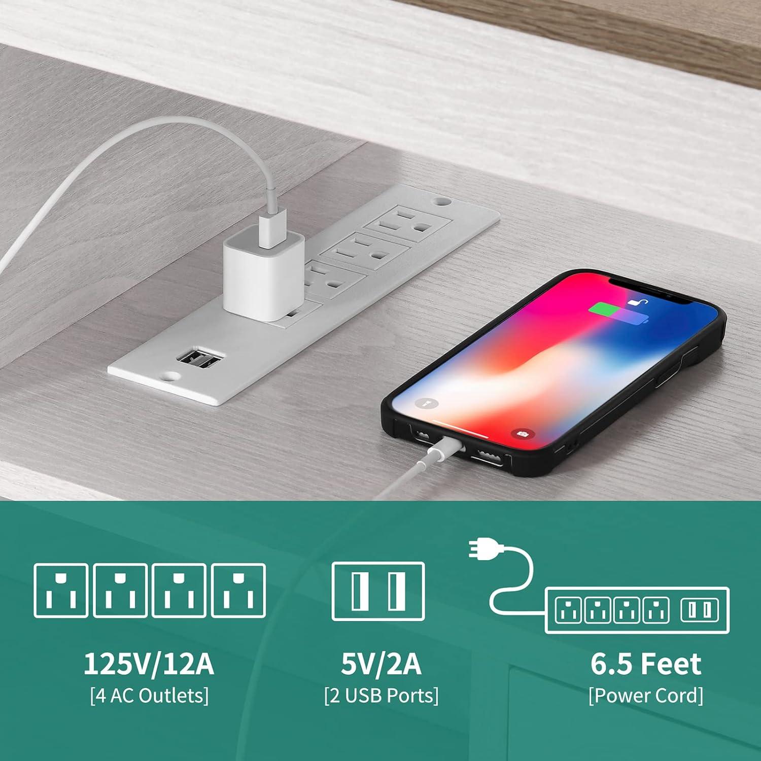 complementing the open shelving, the integrated power outlets further elevate the convenience factor. Equipped with 4 three-prong outlets and 2 USB ports, this setup simplifies powering multiple devices without the need for additional power strips or adapters. Below is a quick overview of the storage features and their benefits that stood out to us: