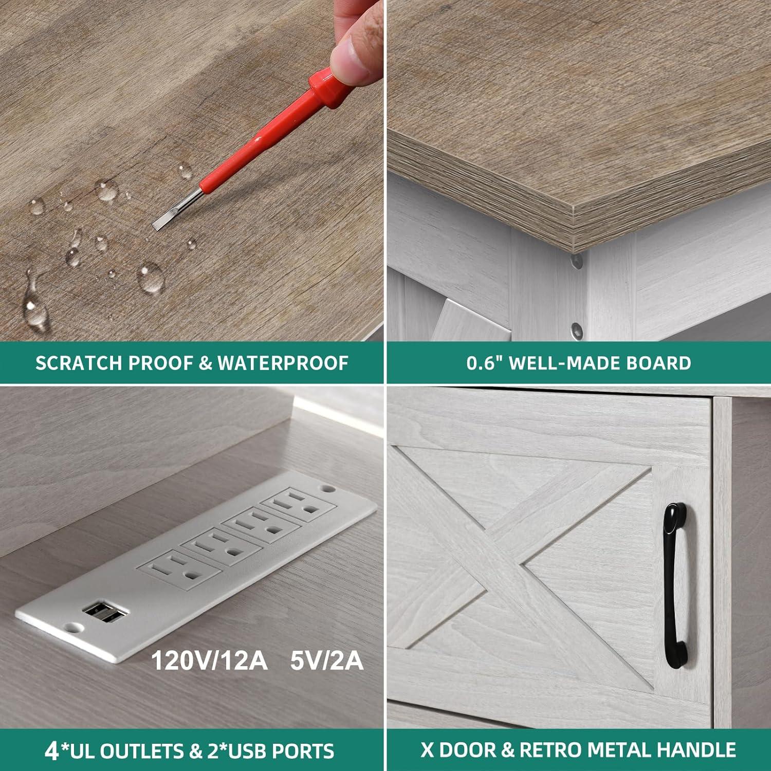 The smart open shelf design coupled with zoned compartments significantly aids in cable management. These open sections allow us to easily access and organize our electronics while keeping cords out of sight. The layout minimizes clutter and prevents tangled cords from piling up behind the unit. It’s clear the design prioritizes both aesthetics and functionality, blending rustic farmhouse charm with practical usability.