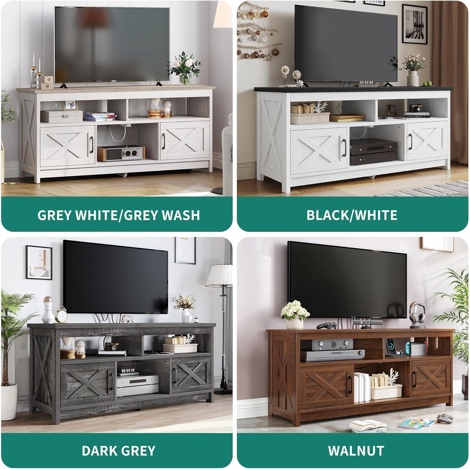 After spending time with this farmhouse-style entertainment center, we appreciate its blend of rustic charm and modern convenience. The distinctive X-shaped design on the sides and doors adds a warm,decorative touch,while the durable engineered wood and wood grain finish ensure it will hold up well over time. We especially like the open shelf layout with zoned compartments,which makes organizing media devices and accessories effortless. One of the stand-out features is the built-in power strip with multiple outlets and USB ports, providing an exceptionally practical solution for managing cables and powering devices without clutter.