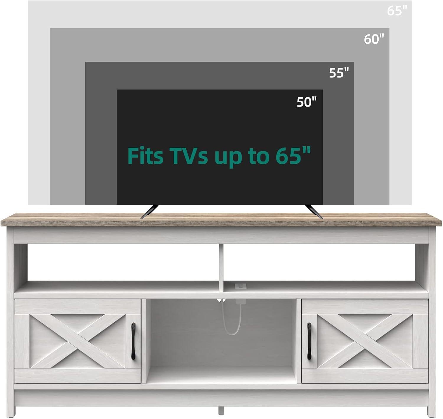We tested the stand with both 55-inch and 65-inch TVs, and it accommodated each size seamlessly. Its robust engineered wood construction provided excellent stability, especially once secured to the wall, which we highly recommend for safety. The open shelf zones kept our media devices and decor elegantly organized, no matter the TV size. The distinctive X-shaped farmhouse detailing added a warm, rustic charm that complemented our living room’s modern farmhouse theme, making the stand more than just functional-it became a centerpiece.
