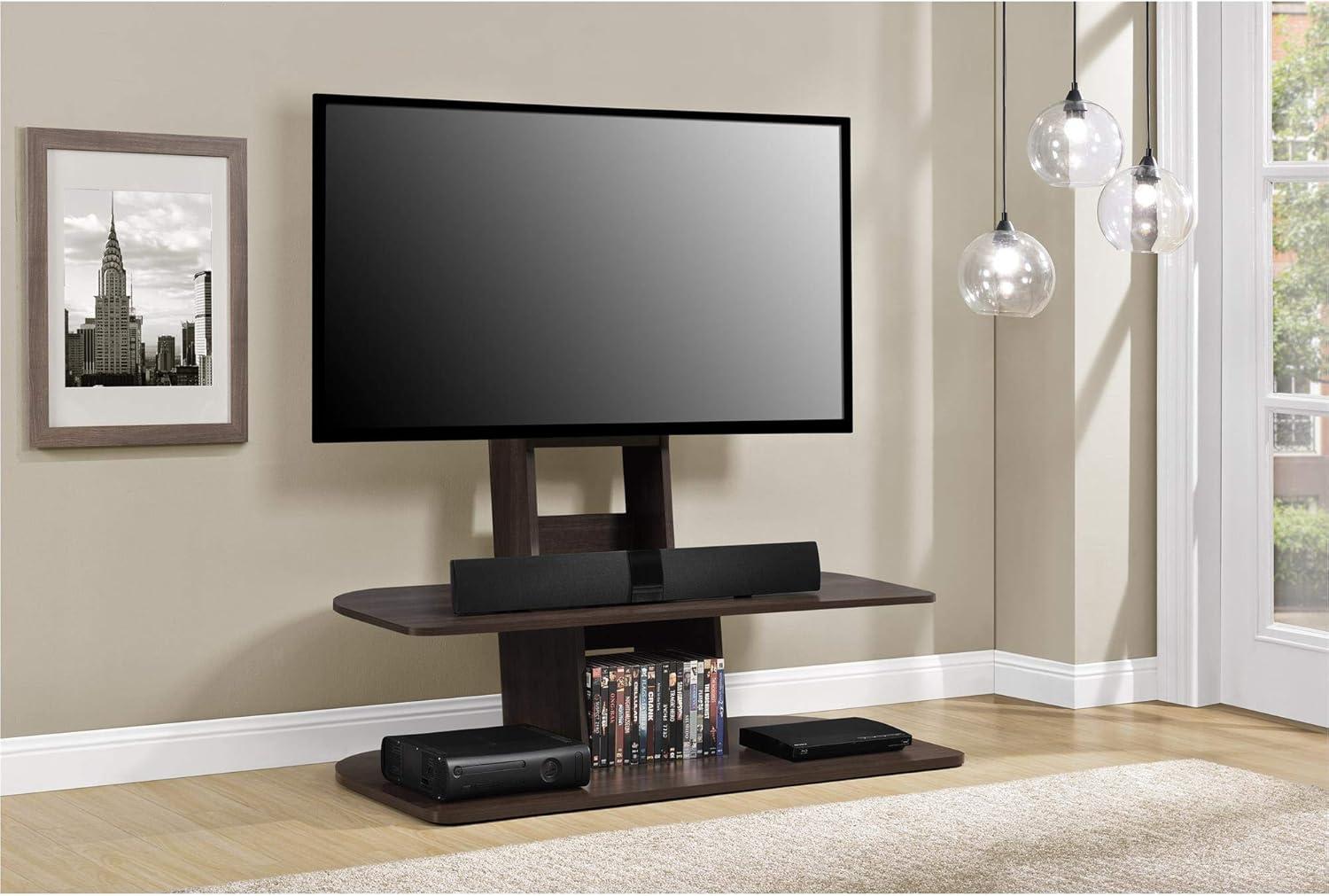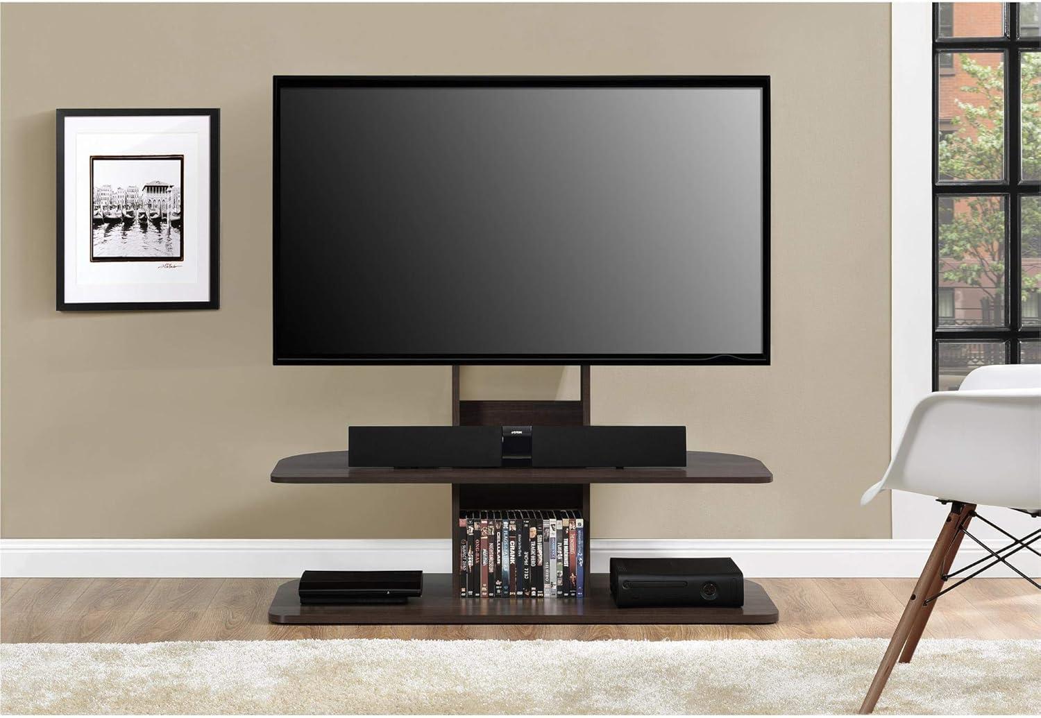 When it comes to balancing cost with quality,this TV stand offers notable value. The modern espresso finish paired with a sturdy combination of laminated particleboard, MDF, and metal provides a stylish yet durable foundation for your entertainment setup. With a weight capacity of up to 105 lbs and dimensions that comfortably accommodate TVs up to 65″, it fits well in most living spaces without overwhelming the room. The included mount is a practical bonus, streamlining the process of elevating your TV for optimal viewing. Plus, the built-in wire management system keeps everything tidy, enhancing both aesthetics and safety.