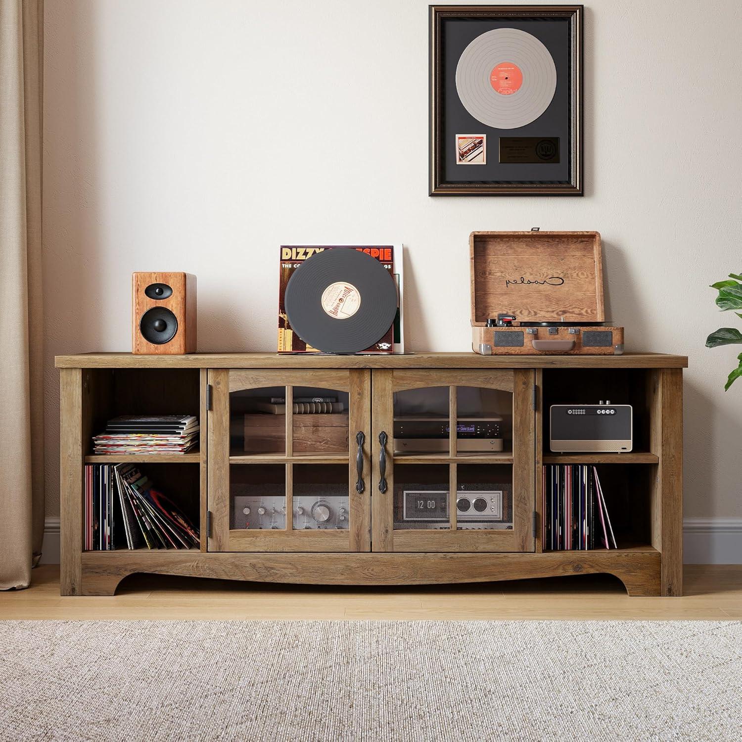 We’re impressed by the harmonious blend of rustic charm and modern functionality this entertainment center brings to any living space. Featuring a warm oak wood grain finish paired with sleek glass doors, it effortlessly complements a wide variety of interior styles-from farmhouse and traditional to contemporary chic. Measuring 15.4” deep, 58” wide, and 22” high, it comfortably supports televisions up to 65 inches, ensuring a stable and pleasant viewing experience. The design thoughtfully incorporates cable cutouts on two cabinet layers, helping maintain a clutter-free appearance while showcasing media components.