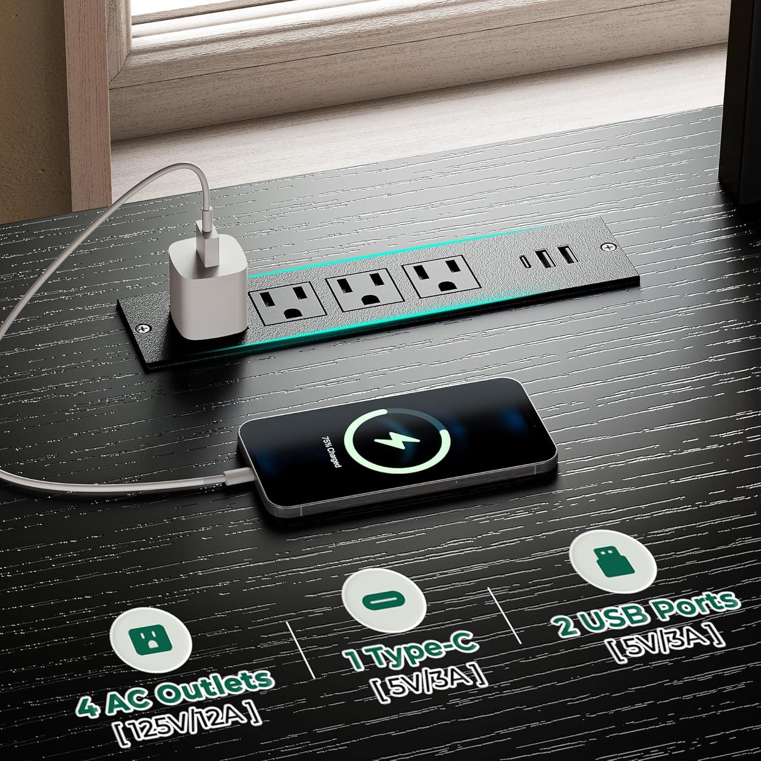 | Integrated Power Outlets & USB Ports Having 4 standard plugs,2 USB ports,and a Type-C port built in means all our devices stay powered and connected without a jumble of extension cords. |