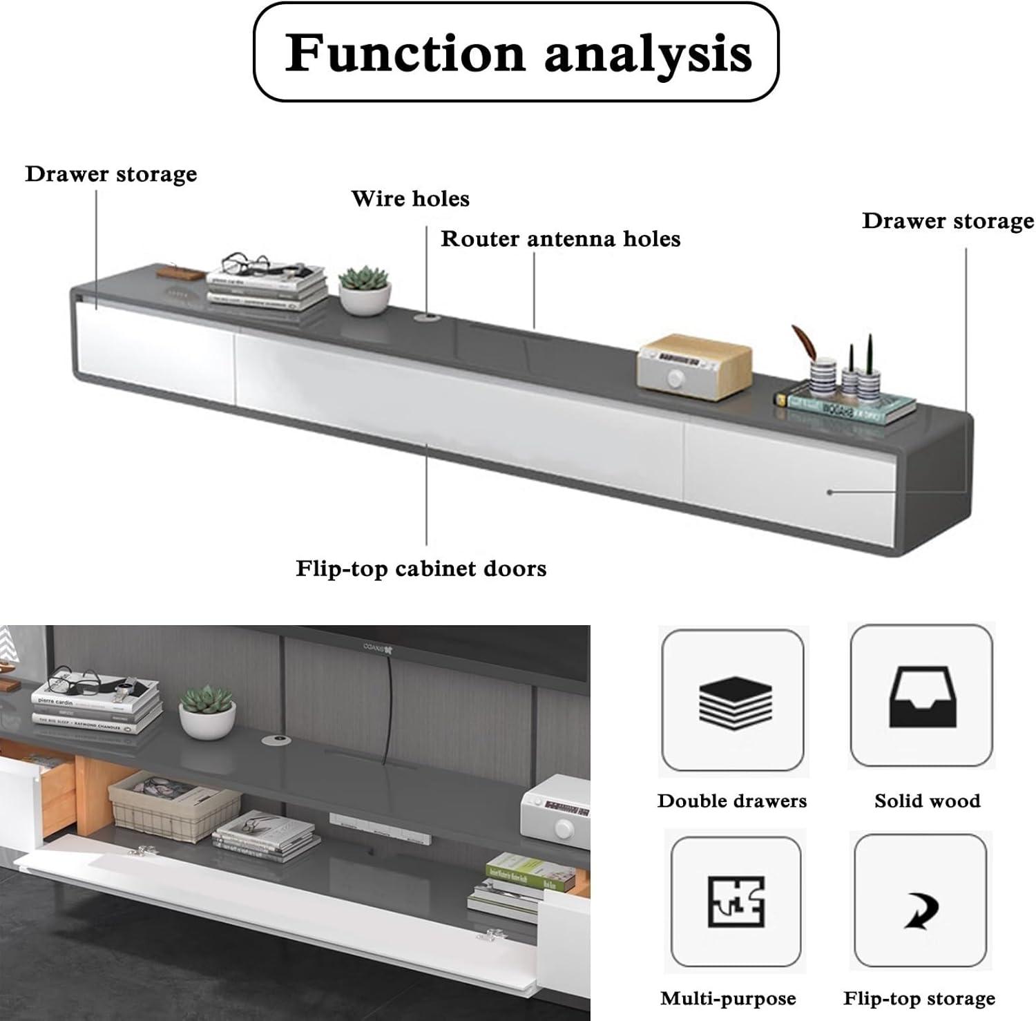 One of the standout features of this wall-mounted unit is its notable storage capacity combined with smart organization. The spacious compartments and multiple enclosed drawers provide ample room to neatly tuck away all your living room essentials-from set-top boxes and game consoles to DVDs and collectibles. The enclosed drawers add an extra layer of privacy, making it easy to store items you want to keep out of sight without sacrificing style. Plus, the smooth surface crafted from solid wood composite adds durability while maintaining a sleek, modern look that complements any interior.