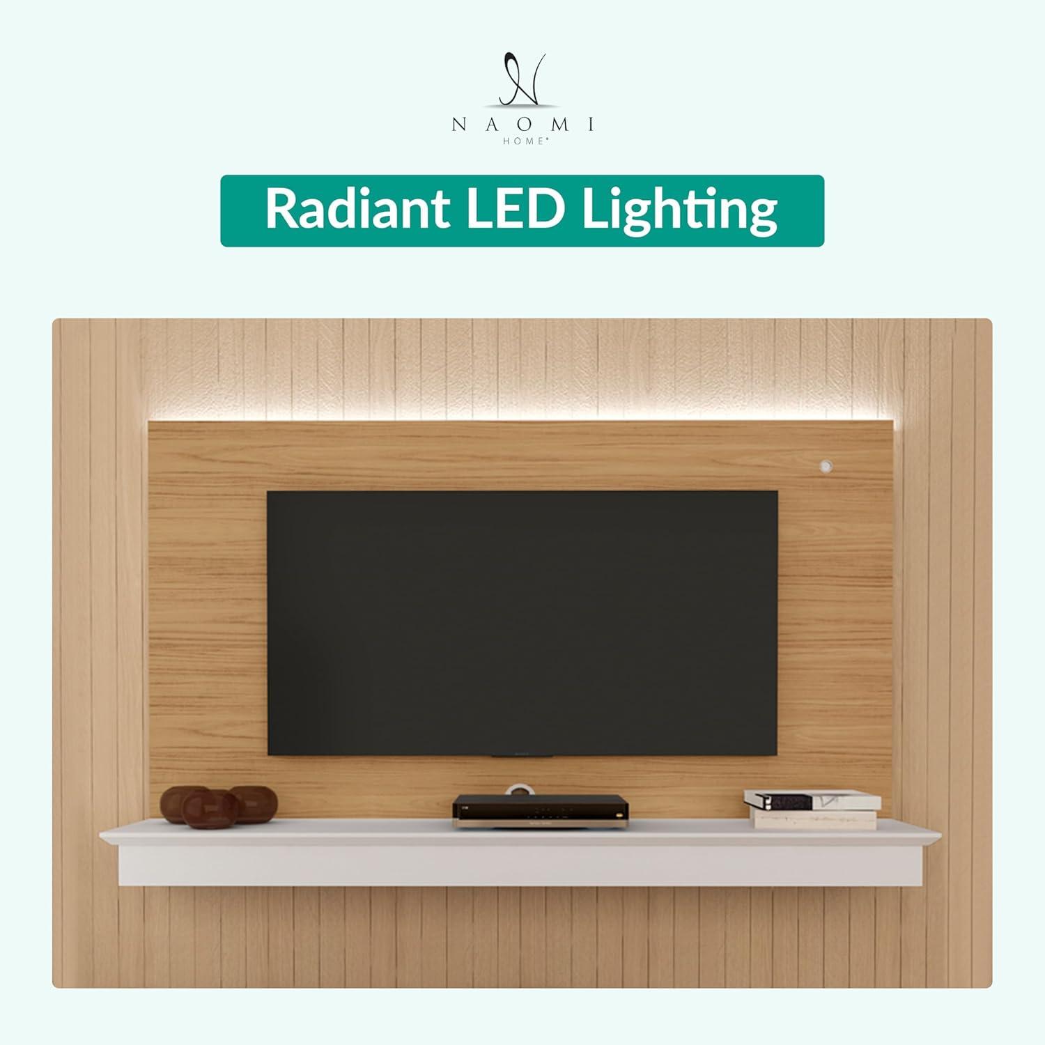 The clean, floating design of this entertainment center brings a modern yet natural vibe to our living room, effortlessly blending with both contemporary and minimalist décor styles. Its natural and white finish adds a refreshing brightness, opening up the space while maintaining warmth. the sleek wall panel paired with the floating shelf maximizes our floor space, creating an airy feel without sacrificing storage. Integrated LED strip lighting along the top edge introduces a subtle glow, elevating the ambiance and turning the entire setup into a stunning focal point during movie nights or casual gatherings.
