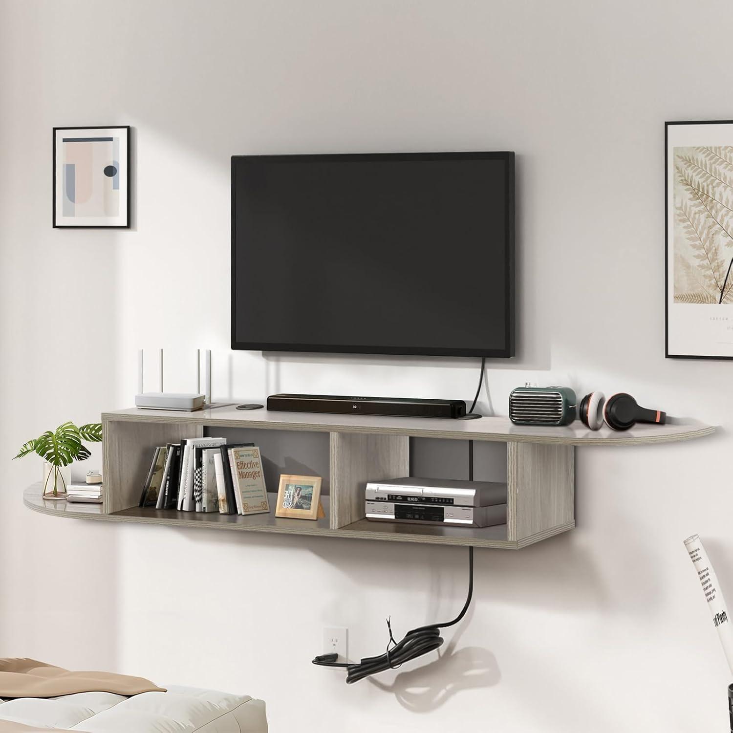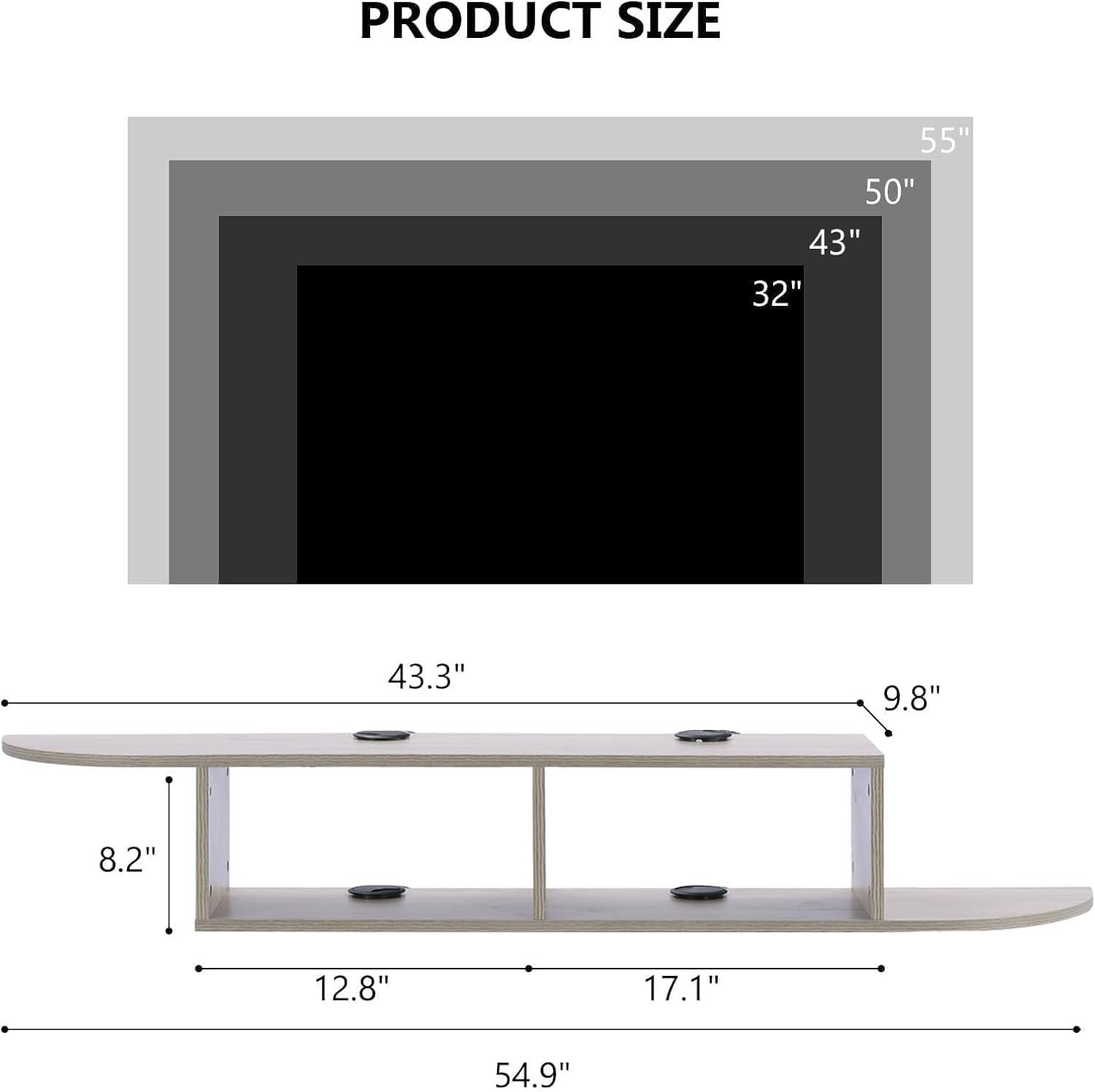 Beyond the size and weight limitations, the floating design offers worldwide practicality. It’s especially beneficial for smaller spaces where floor use is limited, as it frees up room beneath the TV for added storage or décor. the versatile shelf beneath fits various media accessories and decorative items, making it more than just a stand. To better understand compatibility, here’s a quick reference on size limits: