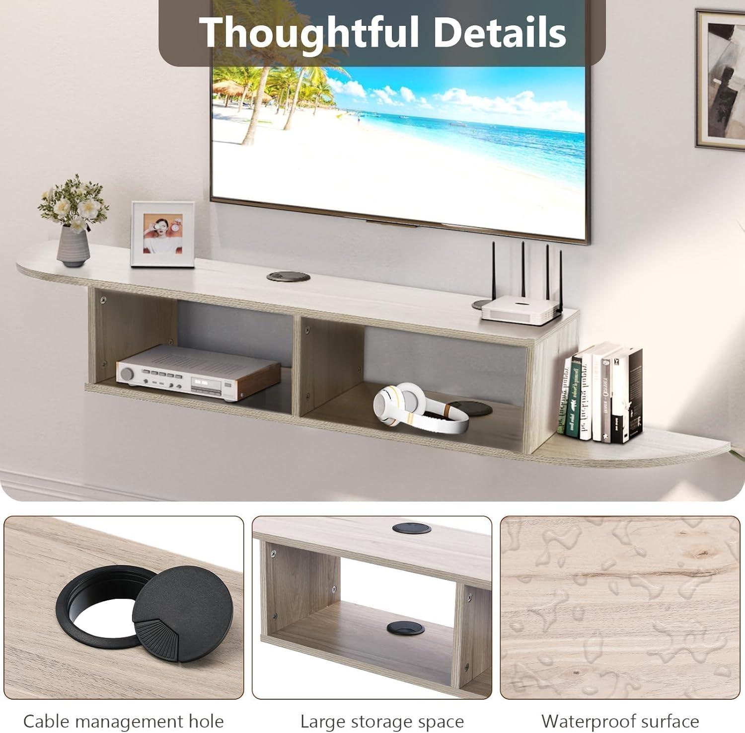 From the moment we installed this floating TV stand, its stability impressed us. The combination of the sturdy L-shaped metal suspension system and the robust E1 grade particleboard ensures a secure hold for TVs up to 55 inches and 70 pounds. We appreciated the clear instructions to check all parts before assembly, which made the process smooth and gave us confidence in the integrity of the mount. The wall fixation feels solid, and there was zero wobbling or shifting even when adjusting cables or placing items on the storage shelf below the TV.