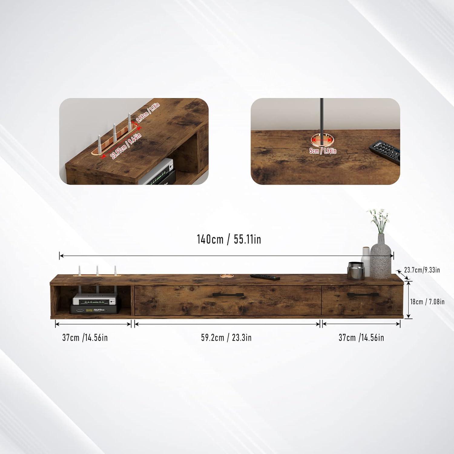 In our experience, this floating TV stand excels at combining style with everyday functionality.Its wall-mounted design significantly frees up floor space, a real boon for busy living areas where every inch counts. The rustic brown finish offers a warm,inviting look,yet the unit remains remarkably easy to clean thanks to its water-resistant and scratch-resistant surface. A simple wipe with a damp cloth is all it takes to maintain its fresh appearance even after frequent use. The two doors offer ample storage, perfect for concealing remotes, gaming consoles, or those accumulative cables that tend to clutter entertainment zones.