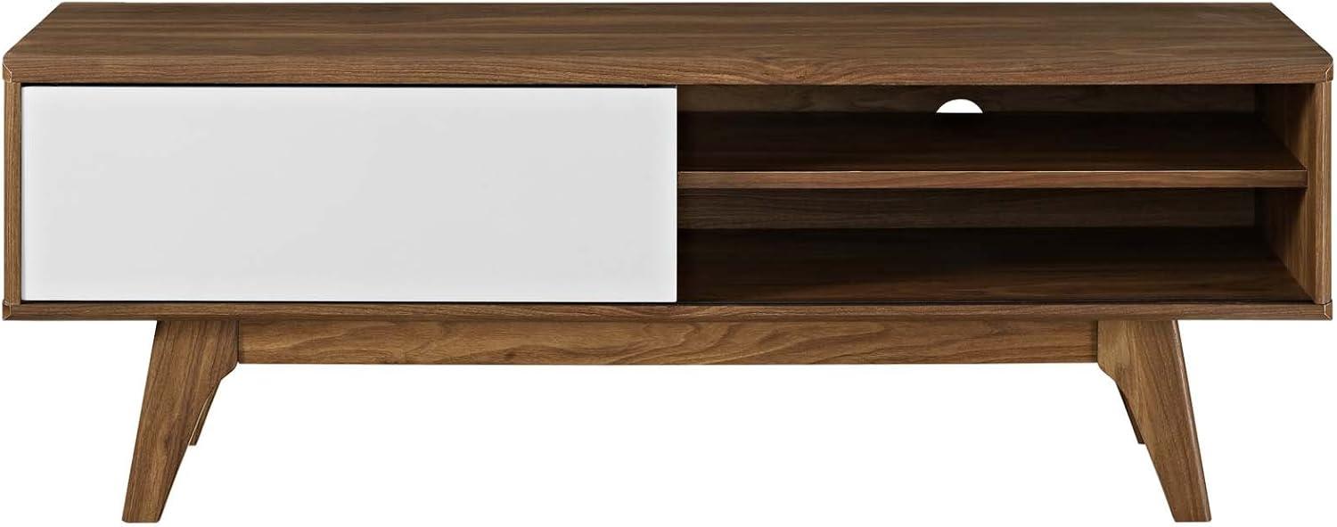 After updating our space with the Modway Envision Mid-Century Modern 44 inch TV stand,we’ve found the perfect blend of style and functionality. Its sleek walnut finish and clean lines seamlessly enhanced our living area, while the sliding white door and adjustable shelves helped us keep everything organized and clutter-free.Whether it’s game consoles, streaming devices, or DVDs, this stand offers versatile storage without compromising on design.The durable construction and thoughtful cable management truly make it a reliable centerpiece for any entertainment setup. For us, it’s been more than just a TV stand-it’s the upgrade our room deserved.