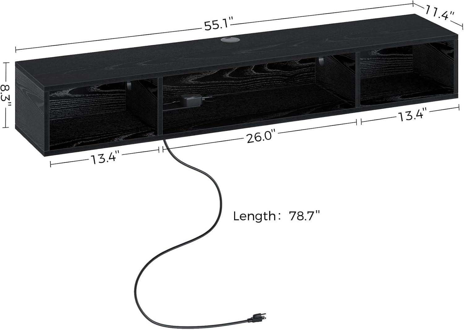 After spending important time with this floating media console, we appreciate its blend of style and functionality. The sturdy wall-mounted design, reinforced with strong anchors and an extra backboard, gave us peace of mind about safety and stability. Its spacious open shelves proved perfect for organizing various media devices, books, and even decorative items, effectively decluttering our living space. The built-in power outlet strip added real convenience by allowing us to charge multiple devices simultaneously without unsightly cords hanging around. Plus, the wire management system kept cables tidy, enhancing the overall sleek look.