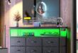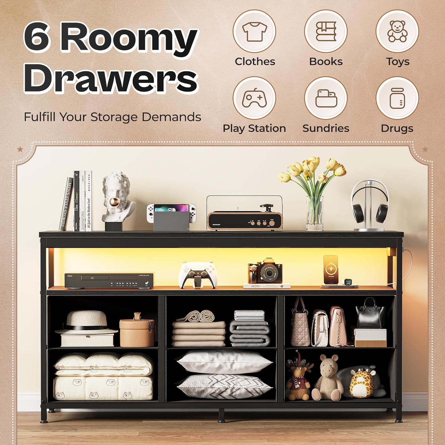 A soft band of LED light catches your eye before teh piece’s silhouette does. The Huuger LED TV Stand — the 47‑inch dresser‑style unit — reads more like a low, significant console when you stand next to it: the thick wood top has a faint grain under your fingertips and the metal frame gives the whole thing a grounded, slightly industrial weight. Six fabric drawers tuck in neatly,adding a lived‑in softness,while the wide desktop comfortably held my 55‑inch screen without feeling crowded. Along one side you notice a small cluster of outlets and ports, a practical little hub that keeps cables from trailing across the floor.