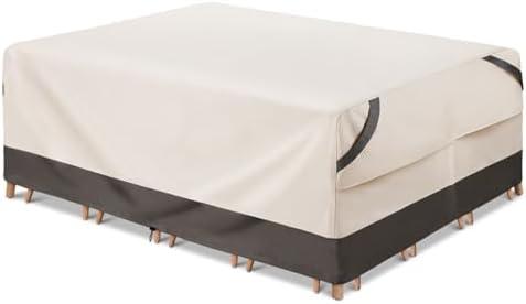 Waterproof Covers for Rectangular Outdoor Furniture, Beige/Grey, Fits up to 90L x 64W x 27.5H
