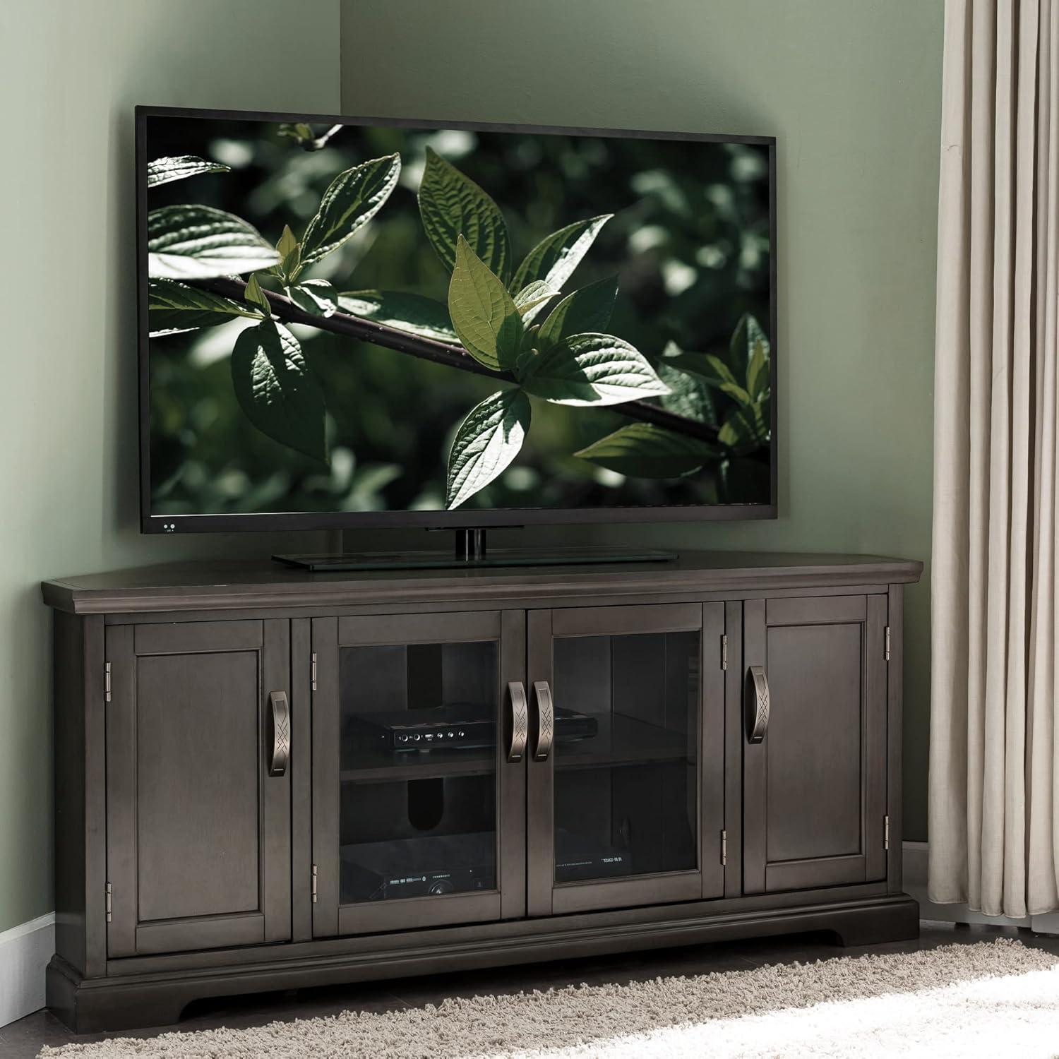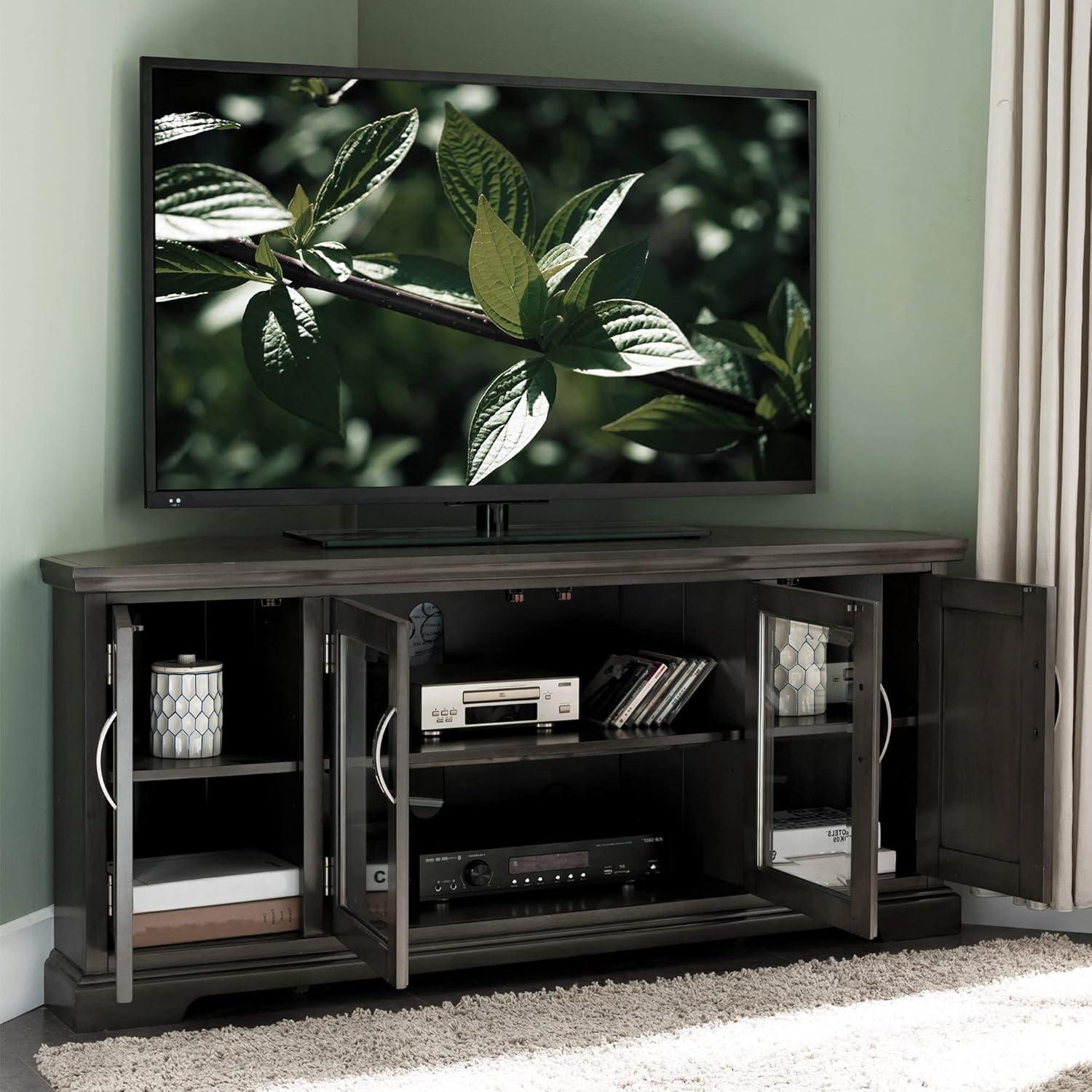 At a glance what you get with the Leick Home corner TV stand in Riverstone Gray
