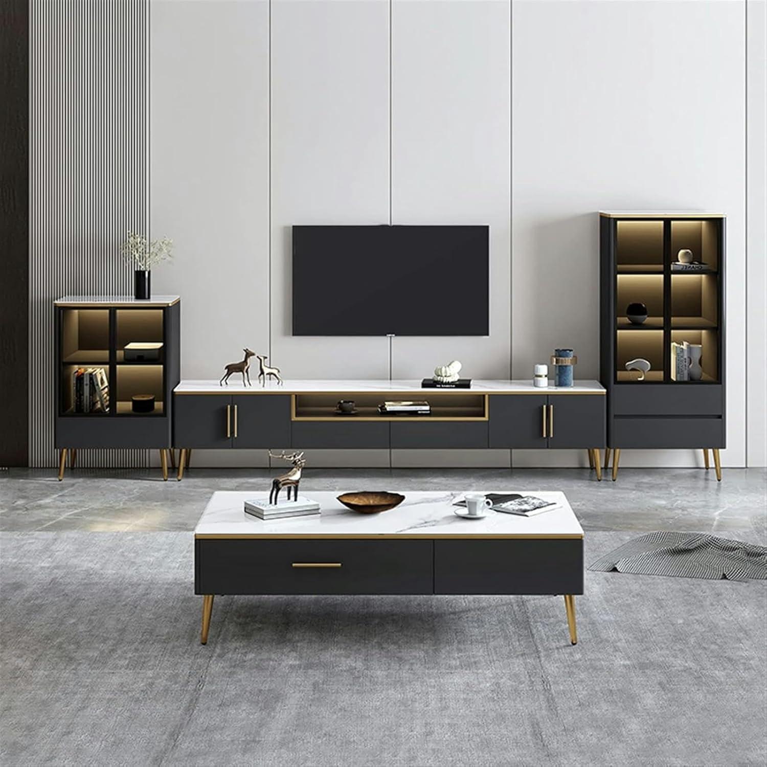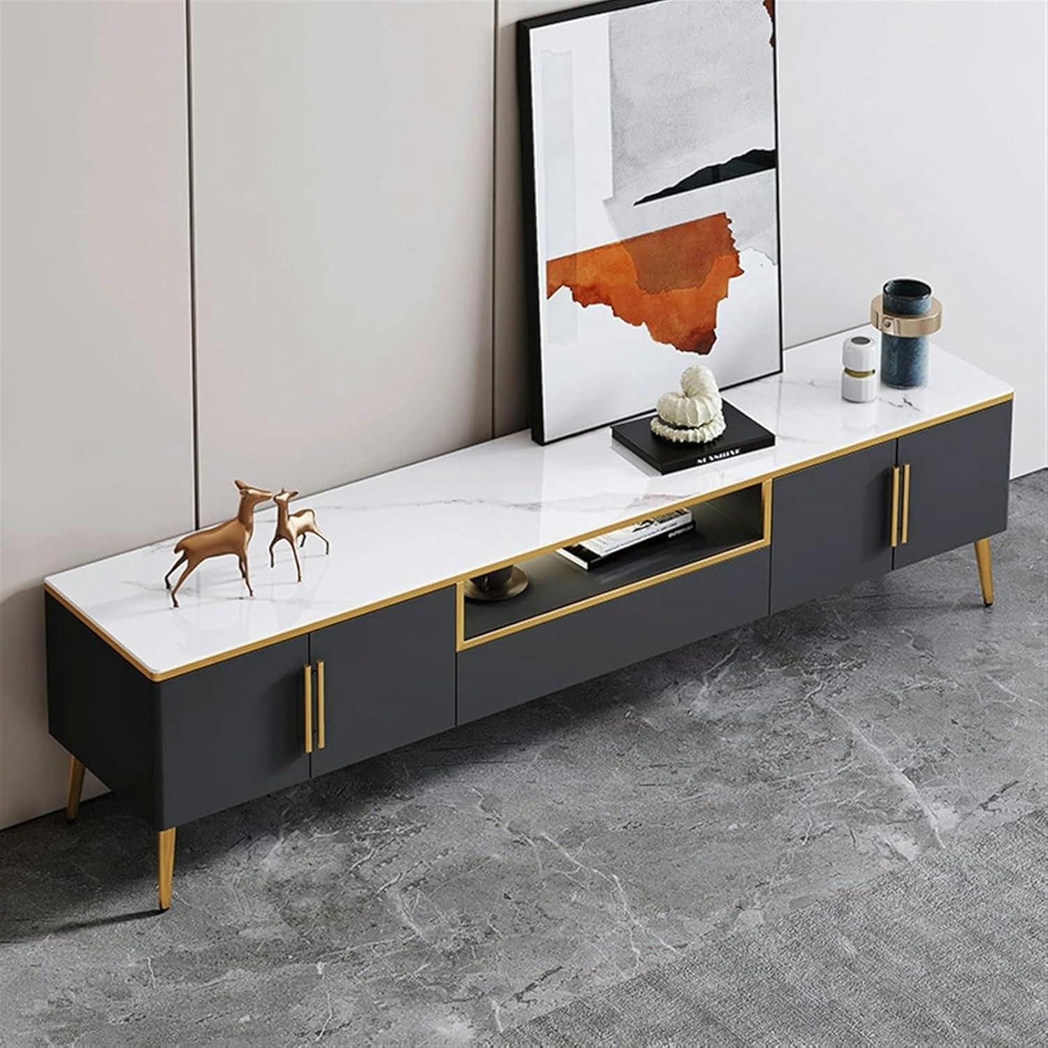 Over time you notice how the TV Stand Television Stands TV Cabinet Light Luxury Modern Living Room Small Family settles against the wall and quietly nudges how the room is used, shifting where things land and how light reads in the evenings. In daily routines you find small comforts in its edges and shelves, the familiar gestures of reaching for the remote or setting down a mug becoming part of the room’s rhythm. The top and doors pick up faint scuffs and fingerprints that soften the finish, marking ordinary days in regular household rhythms.After months of ordinary evenings and busy mornings, it stays.