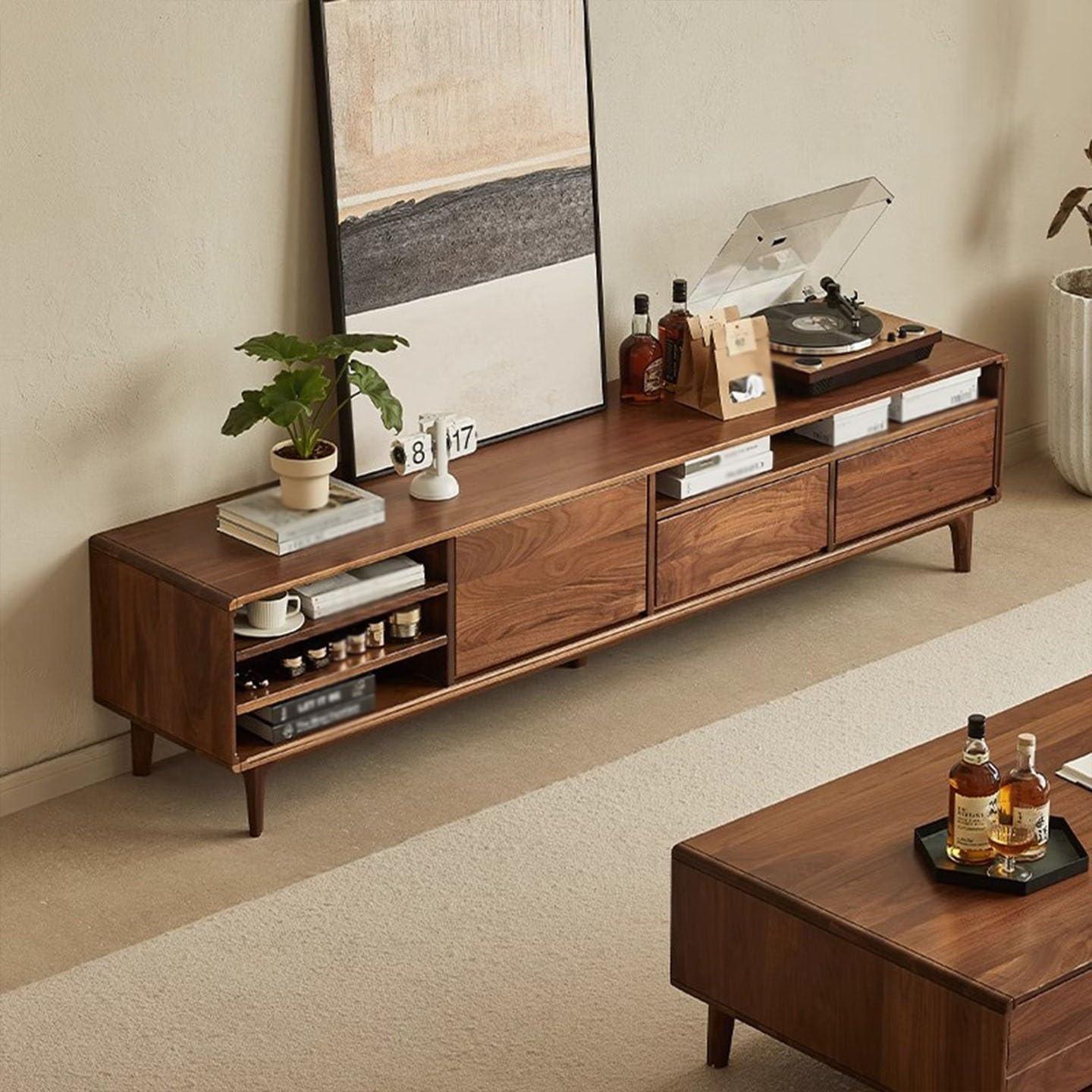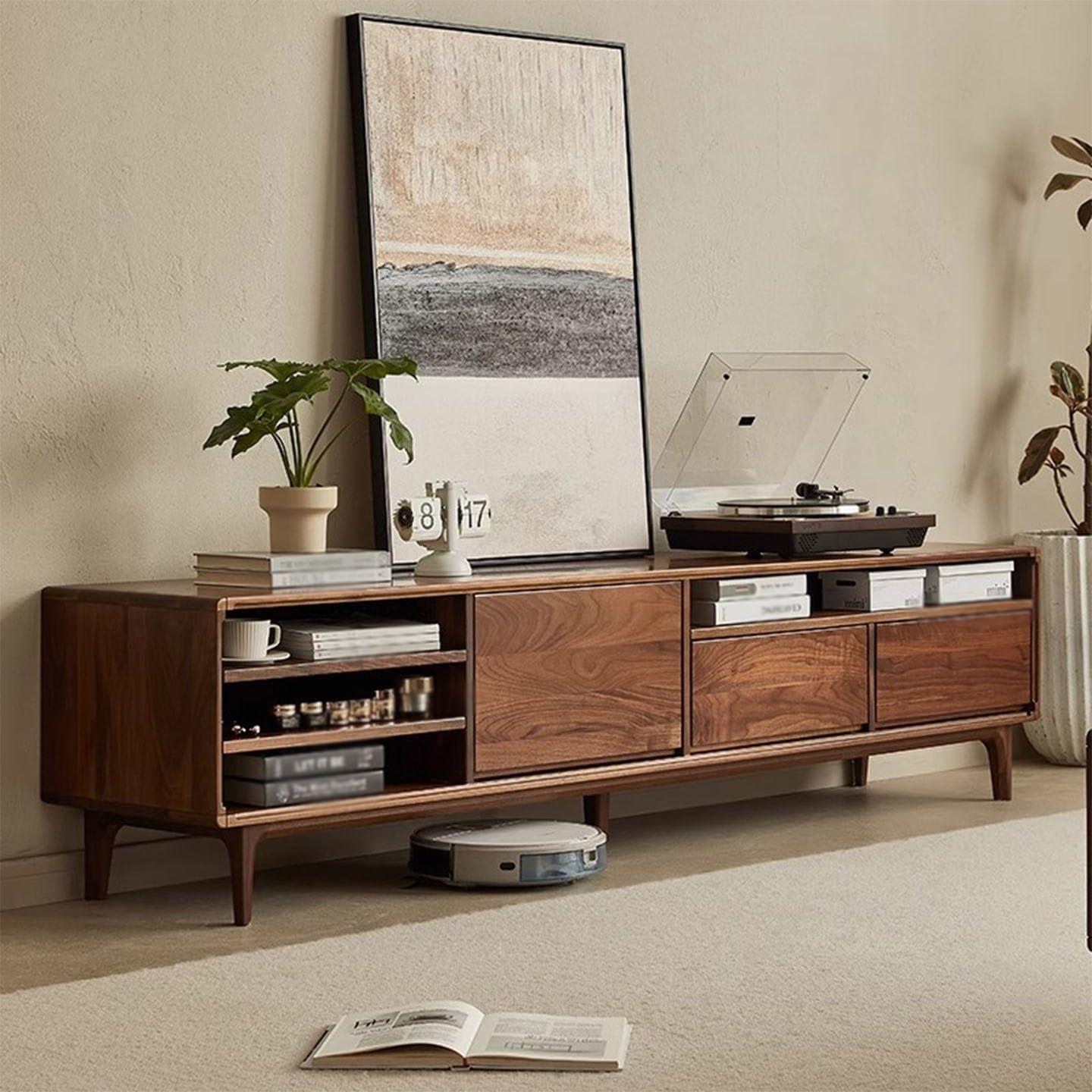 Small marks and softened spots gather where hands and mugs meet, and the piece takes on a familiar weight as the room is used. The living Room TV Stand 200cm Walnut Living Room Storage Cabinet, Household Media console, Entertainment Center for Hotels & Conference Rooms TV Stand with Storage sits low and steady, holding remotes, cables and the odd stack of magazines without asking for attention. Over time it settles into regular household rhythms, shaping how corners are used and how comfortable the seating feels in daily routines. It stays.