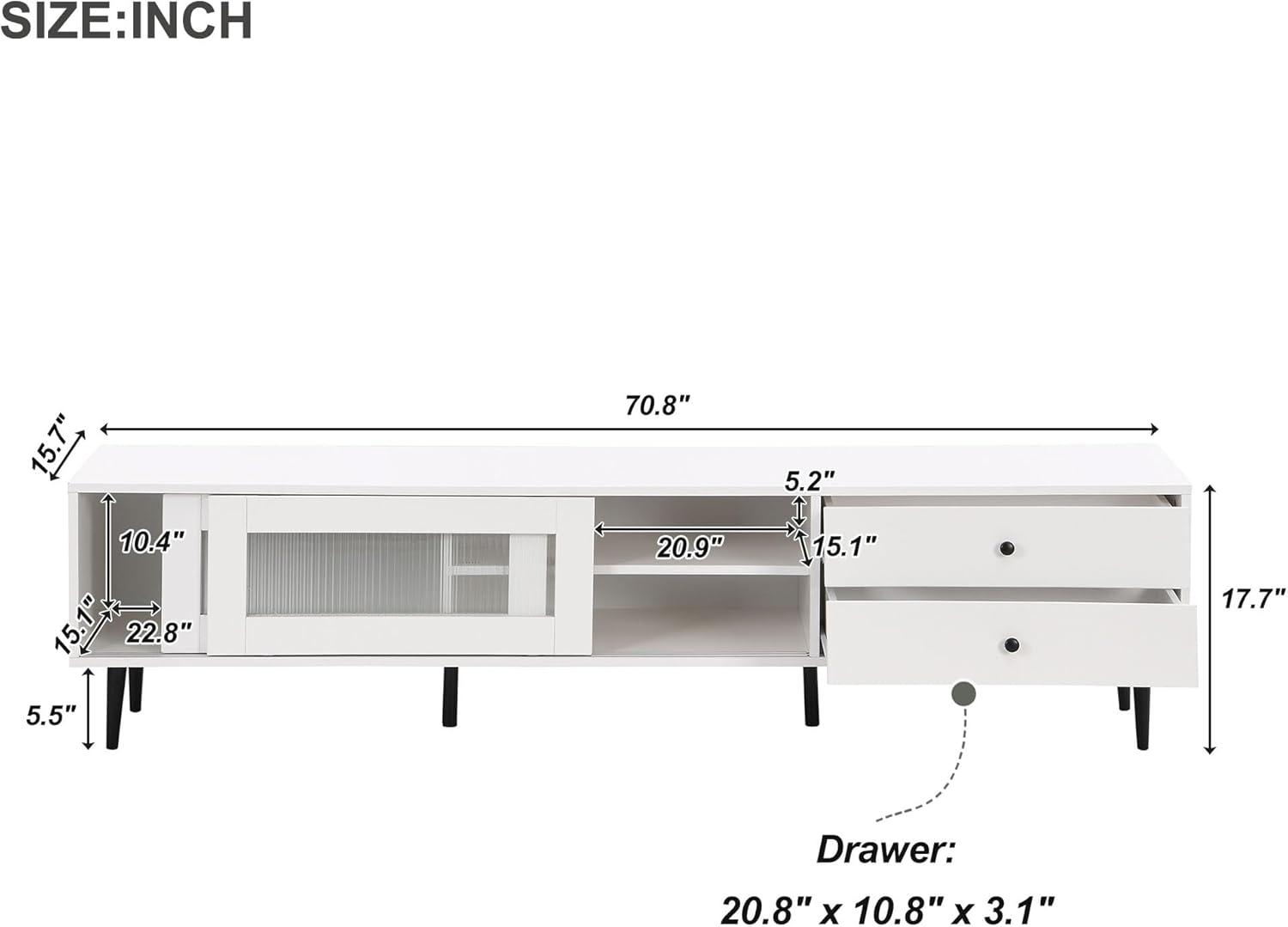 From the moment we​ unpacked this media console, its modern elegance stood out. The⁤ sliding fluted glass doors ⁢on the left add⁢ a complex flair, combining both style⁢ and functionality by offering easy‍ visibility ​and access to stored items. On the‍ right, two slanted drawers provide cleverly concealed storage, ⁣perfect for⁤ organizing ⁤smaller accessories and keeping clutter at bay. The top surface⁢ comfortably supports large TVs up to 75 inches, creating a streamlined entertainment center that feels both spacious and​ sleek in any living room setting.