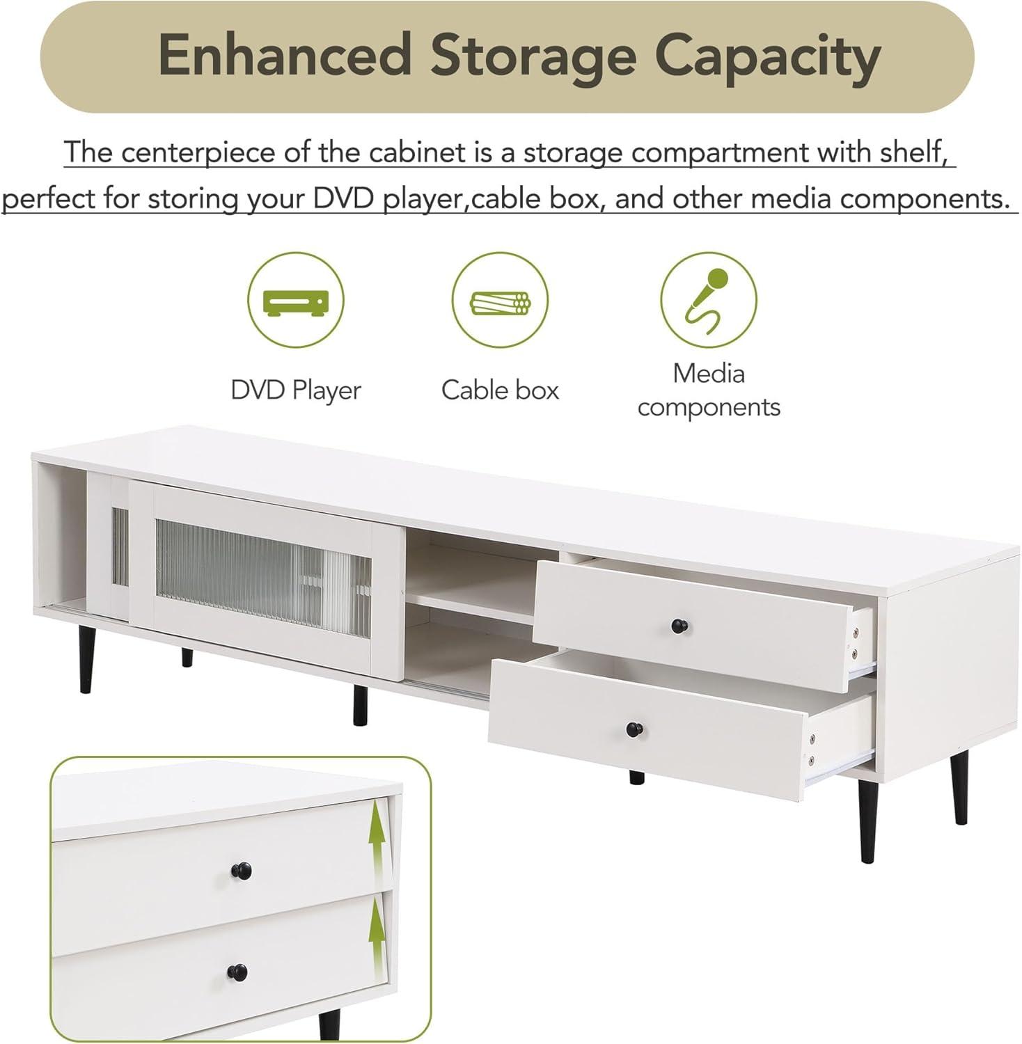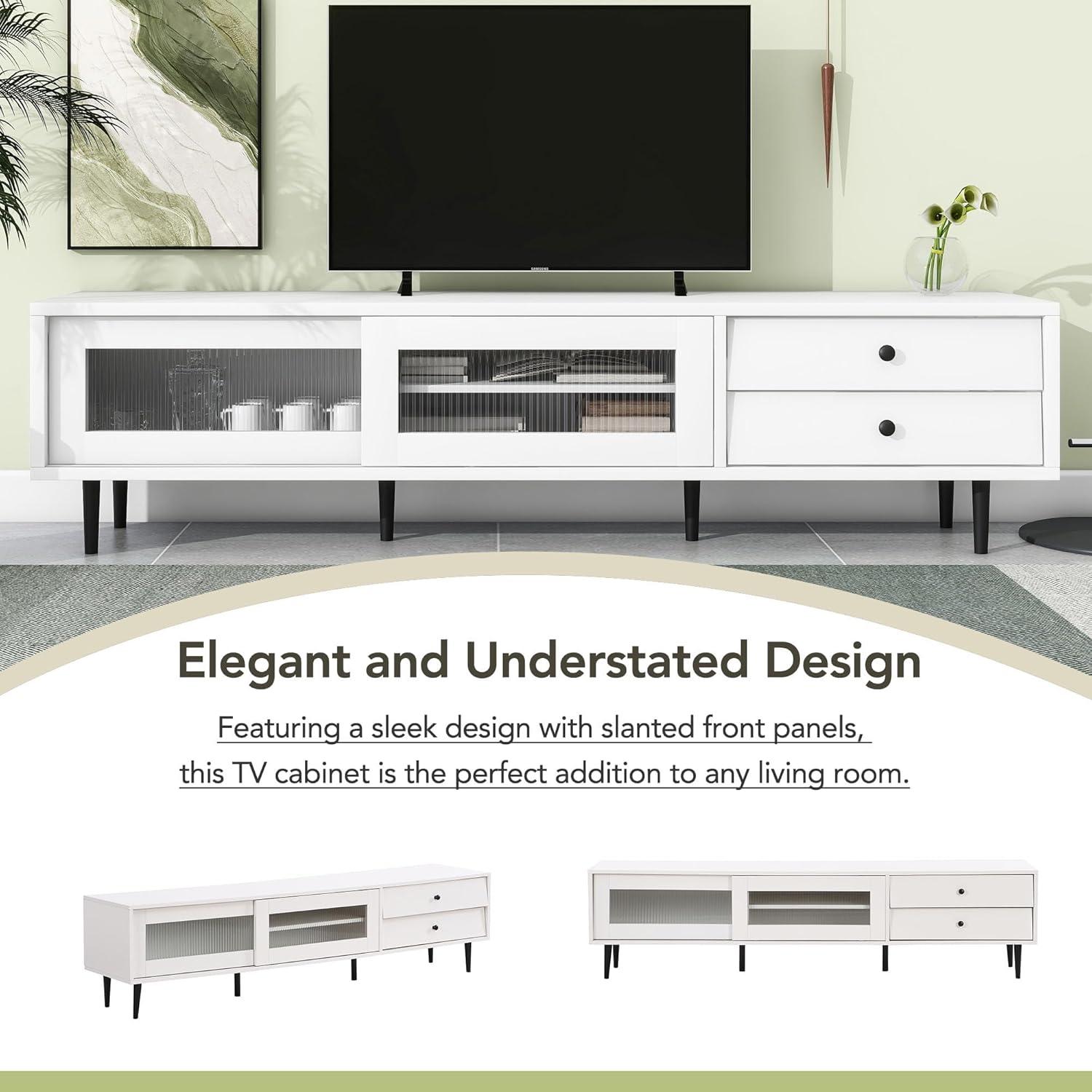 what truly sets this size apart is its thoughtful design that maximizes storage without sacrificing floor space. The sliding fluted glass doors elegantly showcase electronics and décor, while the slanted drawers on the opposite side offer hidden compartments perfect for remotes, cables, and smaller items. This blend of open and closed storage keeps the living room tidy and clutter-free, which is a must in any agreeable home habitat.