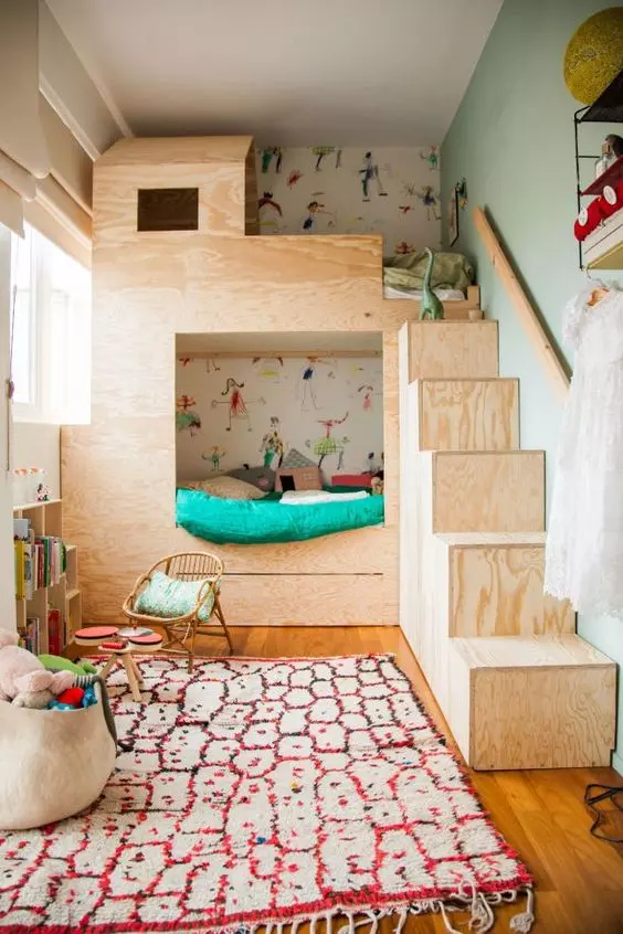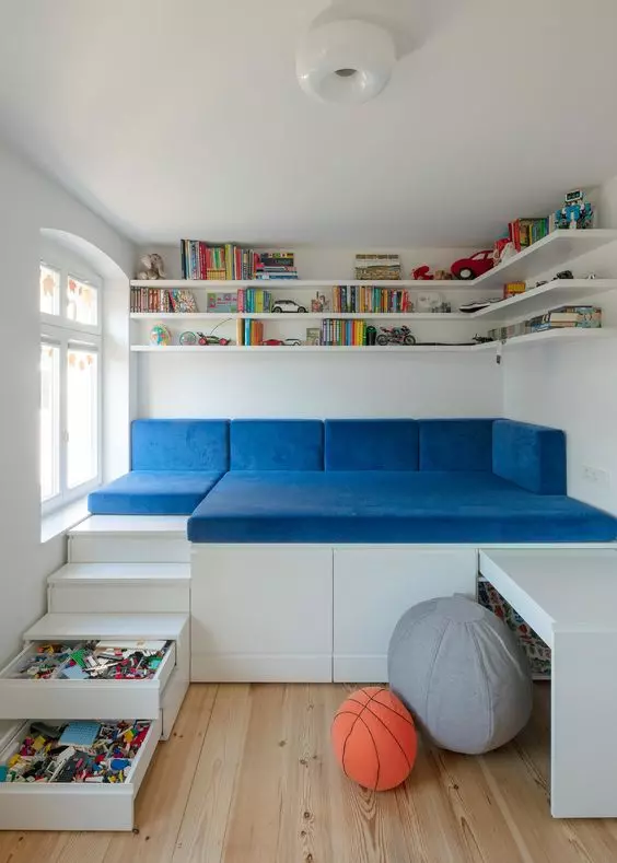 - A compact bed with pull-out drawers for toys and books