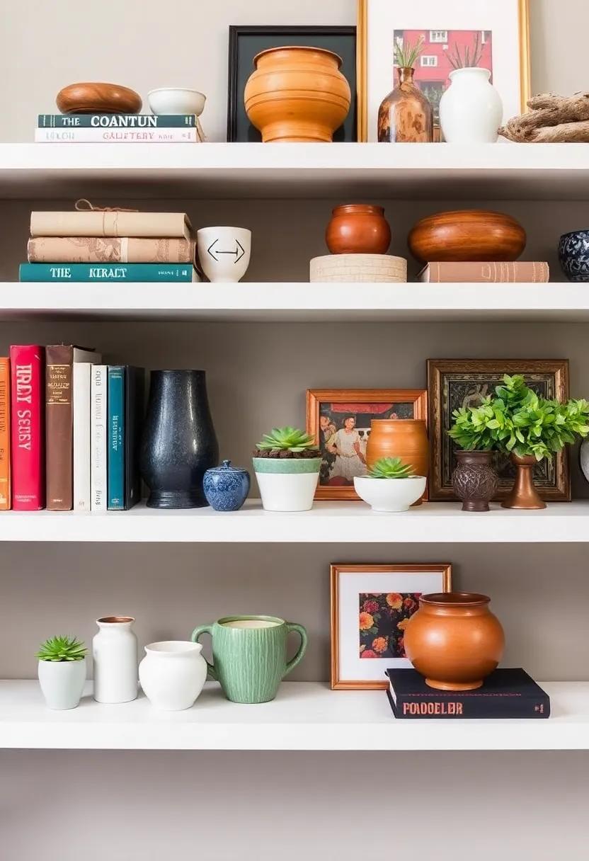 Infusing personality into your shelf displays can transform a simple storage solution into an eye-catching focal point. Start by mixing varied textures and colors to add depth and intrigue. Consider incorporating items such as: