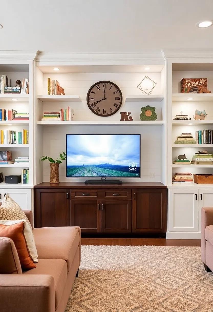 When designing a living room that harmonizes with the hustle and bustle of family life, durability is key. Built-in shelves that are robust and stylish help to maximize functionality while complementing your home’s decor. Consider incorporating materials like solid wood or high-quality laminate that can withstand the test of time—and the occasional bump from a toy or a pet. Look for features that contribute to longevity, such as reinforced brackets and smooth finishes that repel scratches and stains. These designs not only provide practical storage solutions but also contribute to a cohesive look that ties the room together.