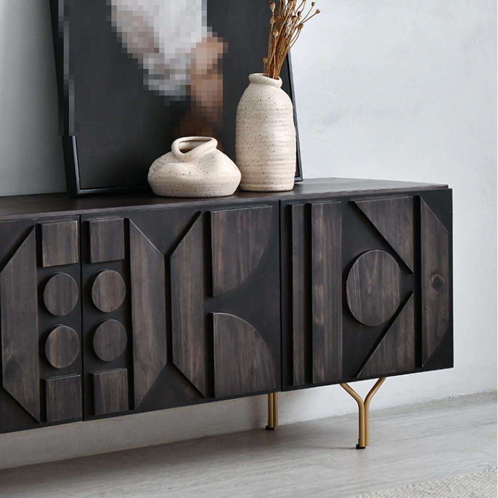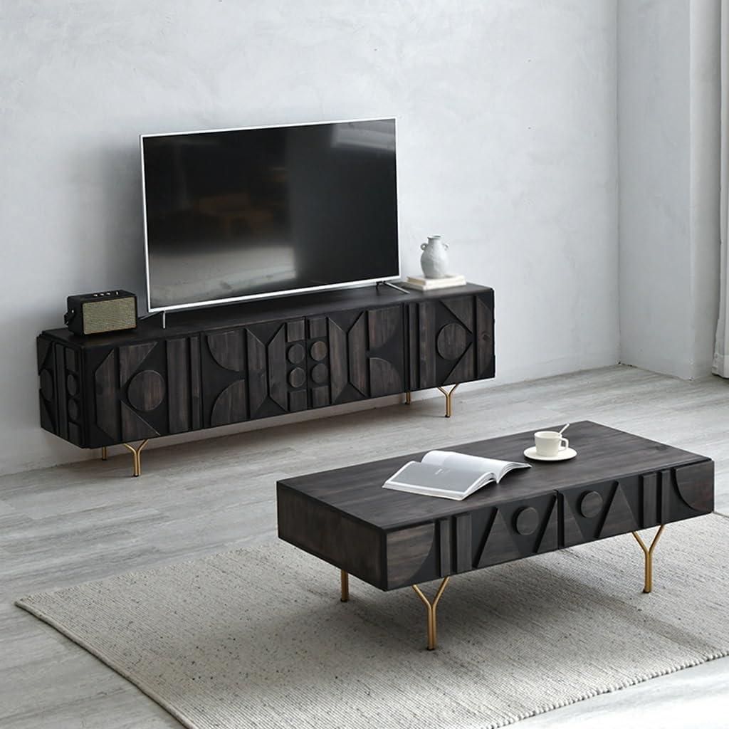 Your hand notices the pine grain before your eyes do — smooth,gently worn where fingers have rested,not glossy but finished enough to shrug off a coffee ring. Listed as the Modern TV Stand creative Retro TV cabinet, you’ll soon see why its low, wide silhouette reads like a deliberate horizontal line in the room: the metal stand lifts it just enough to keep the piece from feeling visually heavy.Four shallow drawers tuck into the face,their seams nearly seamless,and when you close one it settles with a muted,soft-close hush rather than a snap. Up close the wood feels significant; from the couch the cabinet reads as an anchor that stretches across the media wall without shouting. little details — the tapered metal legs, the warmth of the pine finish, the subtle bevels at the edges — make it register more as a lived-in piece than a staged showroom item.