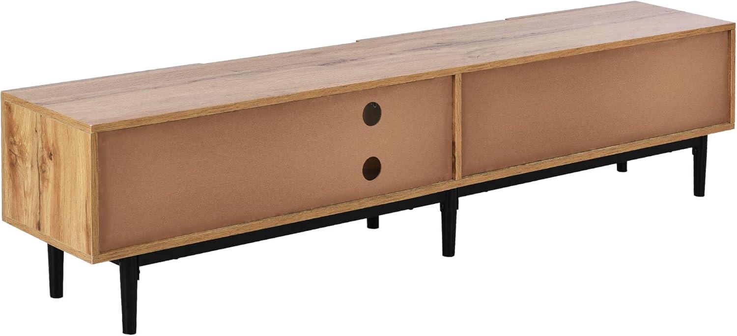 The low, horizontal proportions tend to anchor a room without rising above eye level, so the piece frequently enough sits comfortably beneath wall-mounted art or a floating shelf and leaves sightlines intact. Its segmented shelf layout breaks the front plane into distinct zones, which influences how living areas are arranged and how items are grouped on a daily basis—electronics often occupy the centered openings while decorative objects and storage bins get tucked into the flanking compartments. Everyday habits show up: small adjustments to make a soundbar sit flush, nudging a lamp to avoid LED glare on a screen, or rotating a stack of books so spines face outward. In tighter rooms the breadth can limit placement options and the open shelving makes clutter more visible, while the mix of open and closed compartments creates pockets of visual calm and exposure in different parts of the unit.