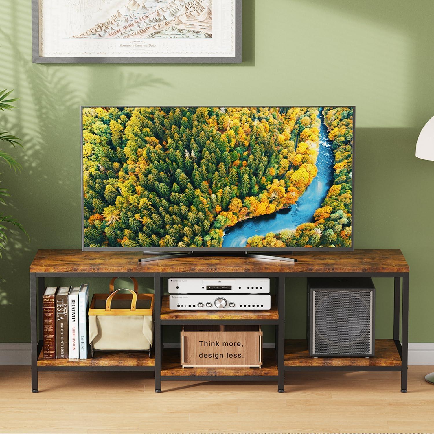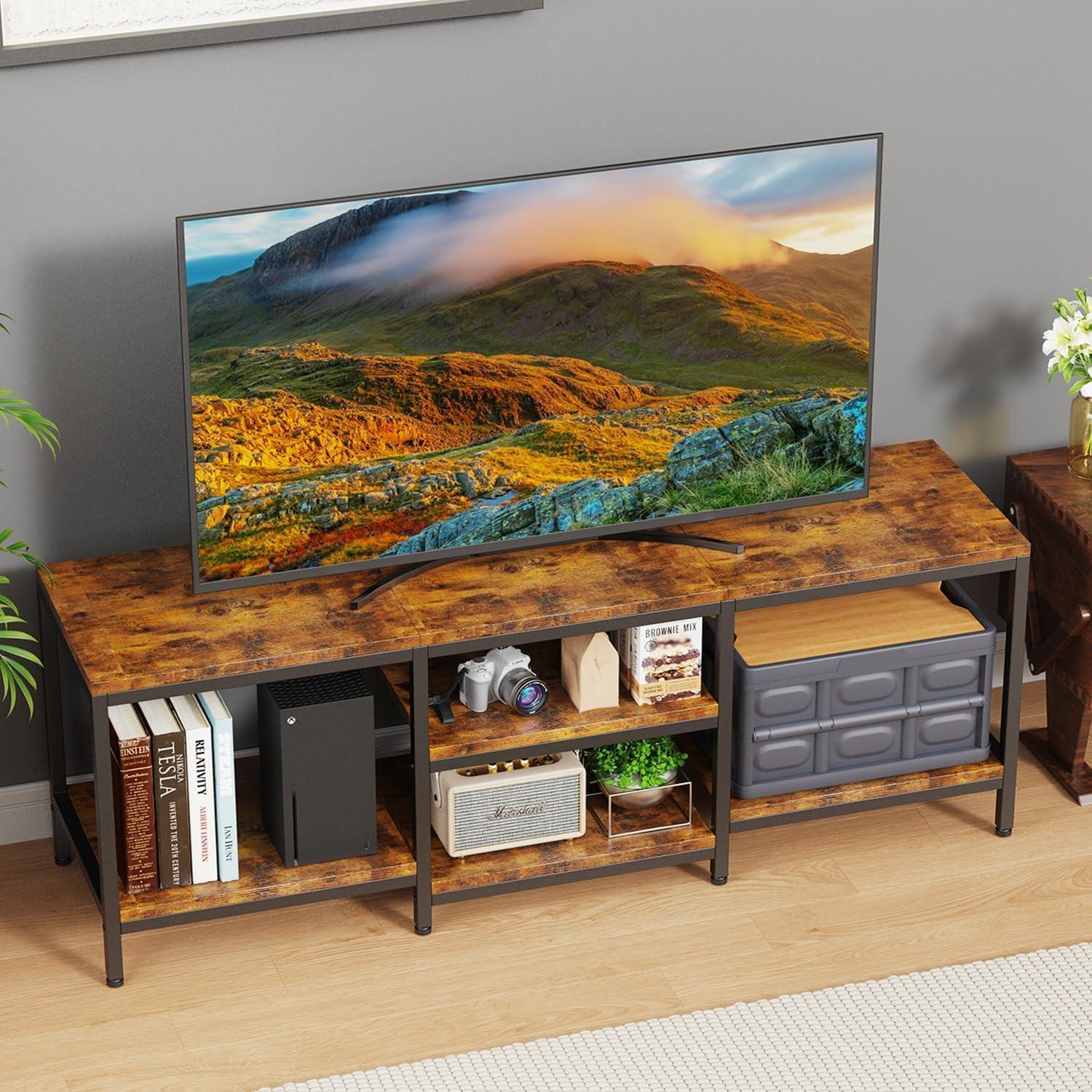 this TV stand strikes a solid balance between style, function, and sturdiness. While it demands a bit of effort to assemble and requires upkeep due to its open design, the storage capacity and sturdy build earn it our respect.Whether you’re after industrial rustic vibes or simply want a reliable entertainment hub, this stand checks many boxes for us.