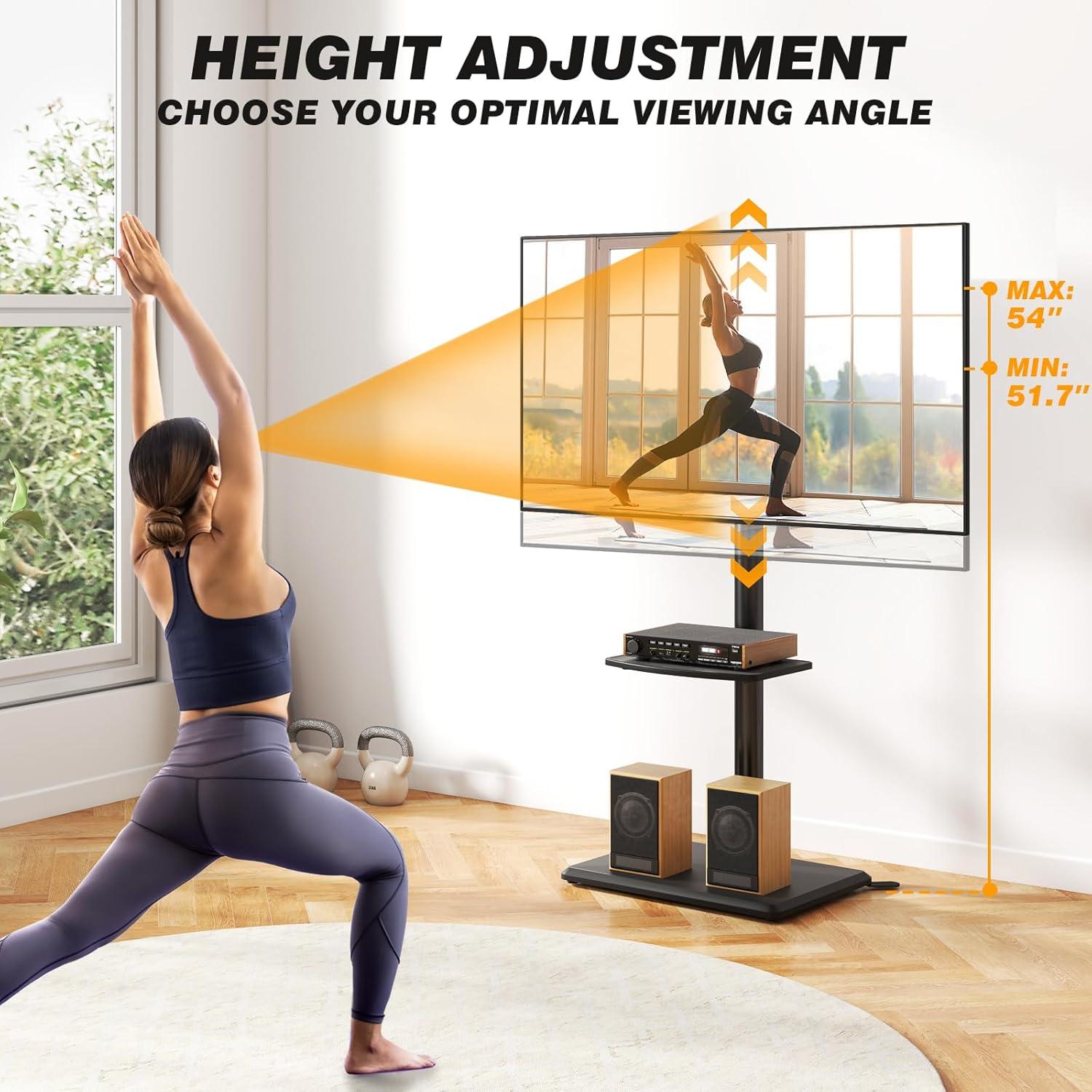 When placing this stand alongside other floor stands we’ve used, several features immediately stood out. the height adjustability allows for ergonomic, eye-level viewing that’s frequently enough lacking in competing models-ranging smoothly between 51.7″ and 54″ to reduce neck strain during long sessions. Unlike some stands with flimsy metal bases, the wood base combined with extra support feet provides a noticeable boost in stability, giving us confidence that our TV stays secure even on uneven floors or in busy households.The integrated safety lock further prevents any tipping issues we’ve encountered with cheaper alternatives. Another smart addition is the 360° rotating shelf, perfect for placing a soundbar or streaming device, which swivels easily without fuss-something most other stands simply don’t offer.