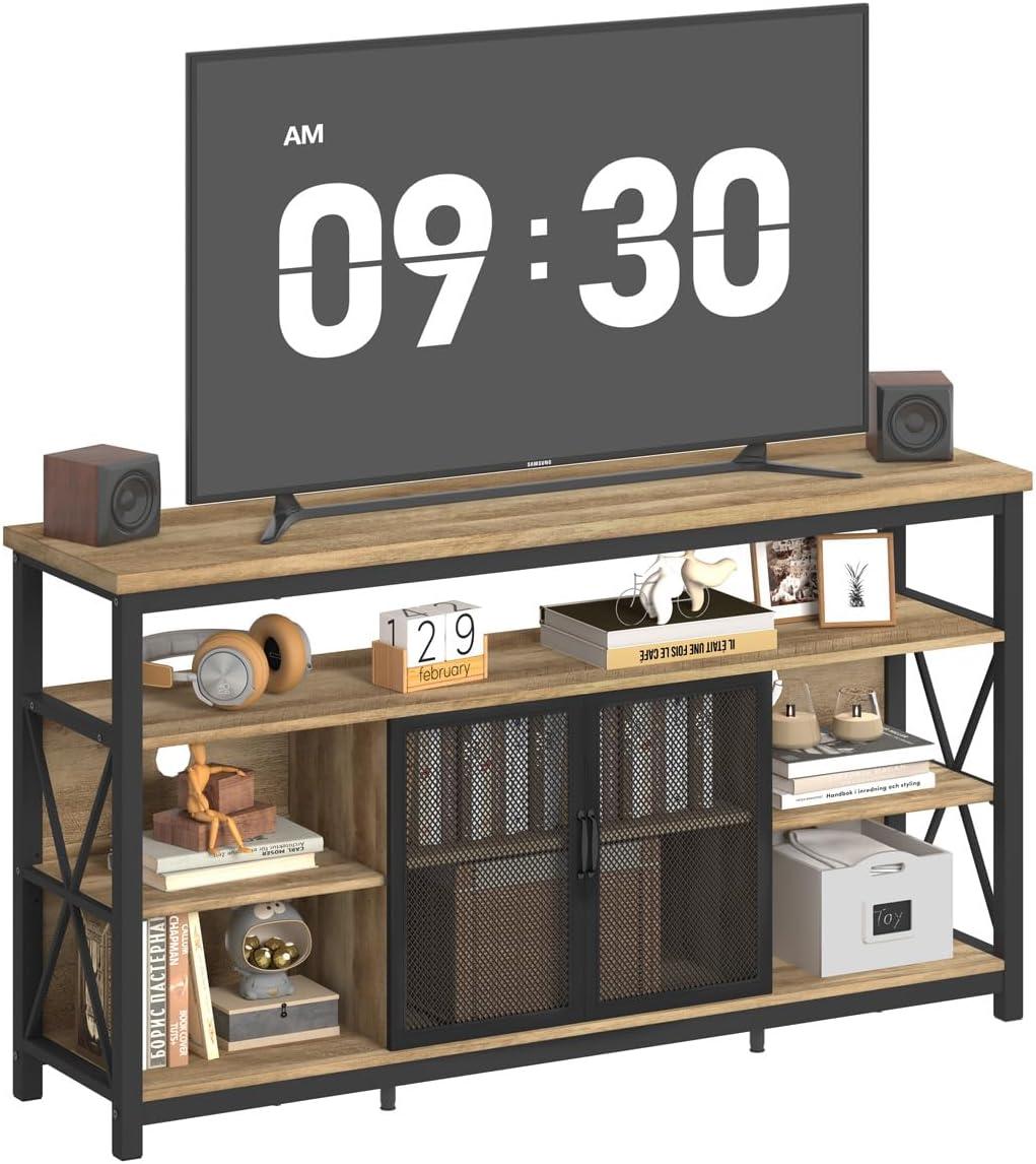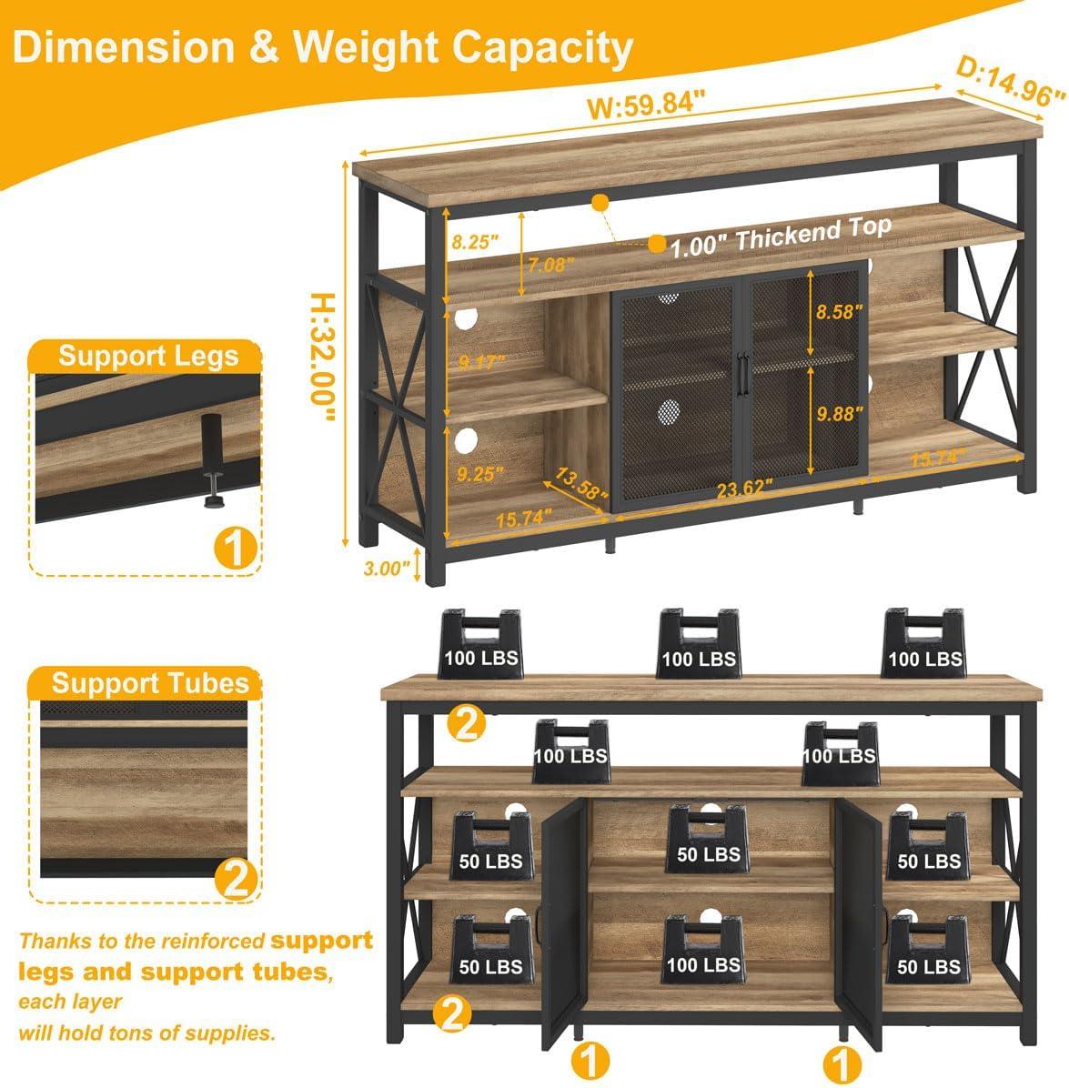After thoroughly testing this entertainment center, we appreciate the seamless fusion of industrial design and practical functionality it brings to any room. its reinforced metal frame combined with a high-grade MDF build promises impressive sturdiness, supporting up to 300 lbs on the top surface and 200 lbs on each of the middle and bottom shelves.The added X-shaped metal side frames and support tubes guarantee stability, making it suitable for large TVs and heavy media equipment. Plus, the taller profile provides a comfortable viewing height that enhances your living or bedroom setup. we also value the thoughtful features like the mesh door cabinet for concealing clutter and multiple cord management holes that keep wires tidy without compromising on style.