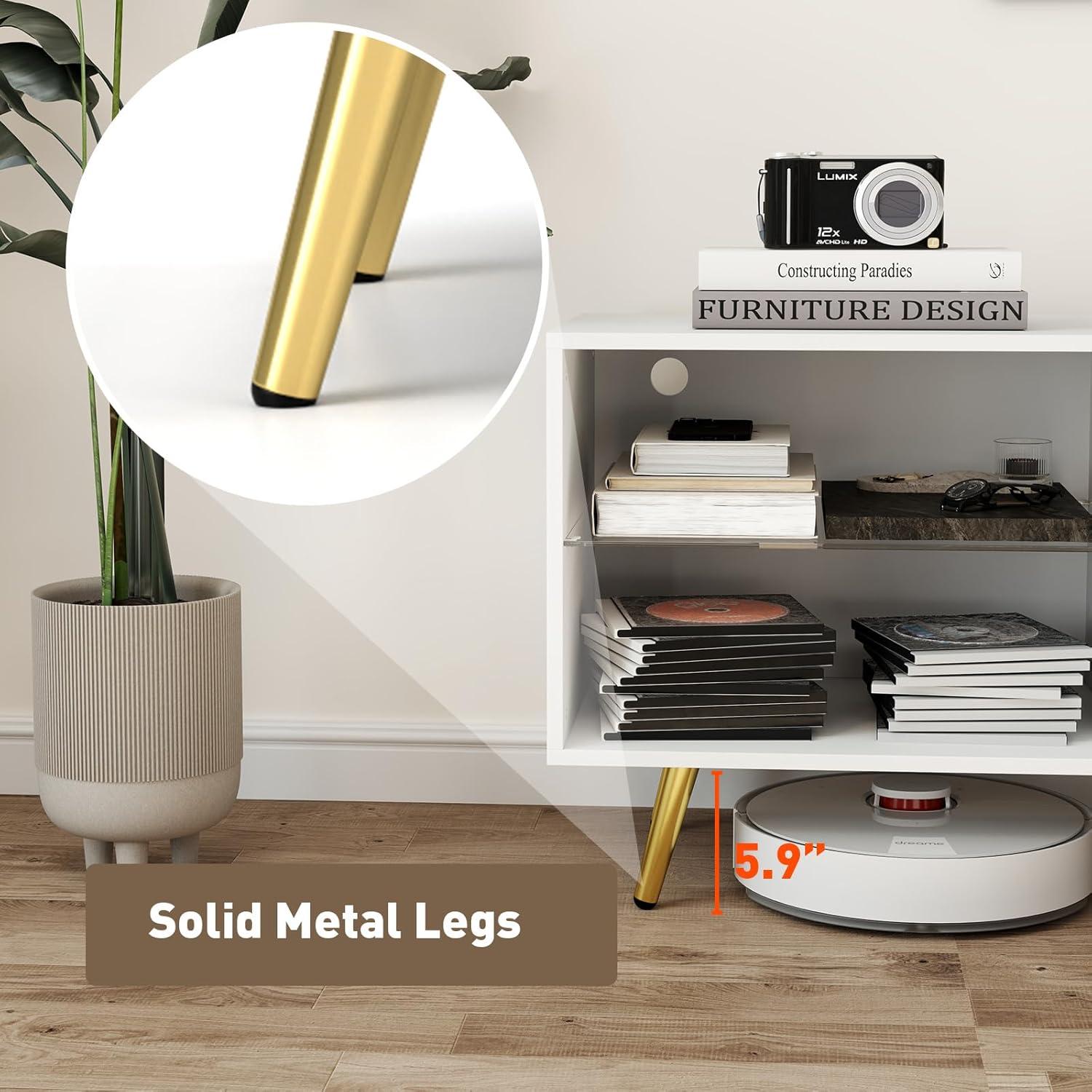 Beyond aesthetics, the golden legs offer sturdy support while providing practical clearance beneath the stand. This thoughtful detail ensures robotic vacuum cleaners can glide freely, making maintenance a breeze. The harmonious combination of white and gold creates a balanced visual appeal that adds both style and functionality to the room. Below is a quick overview of these design features that caught our attention: