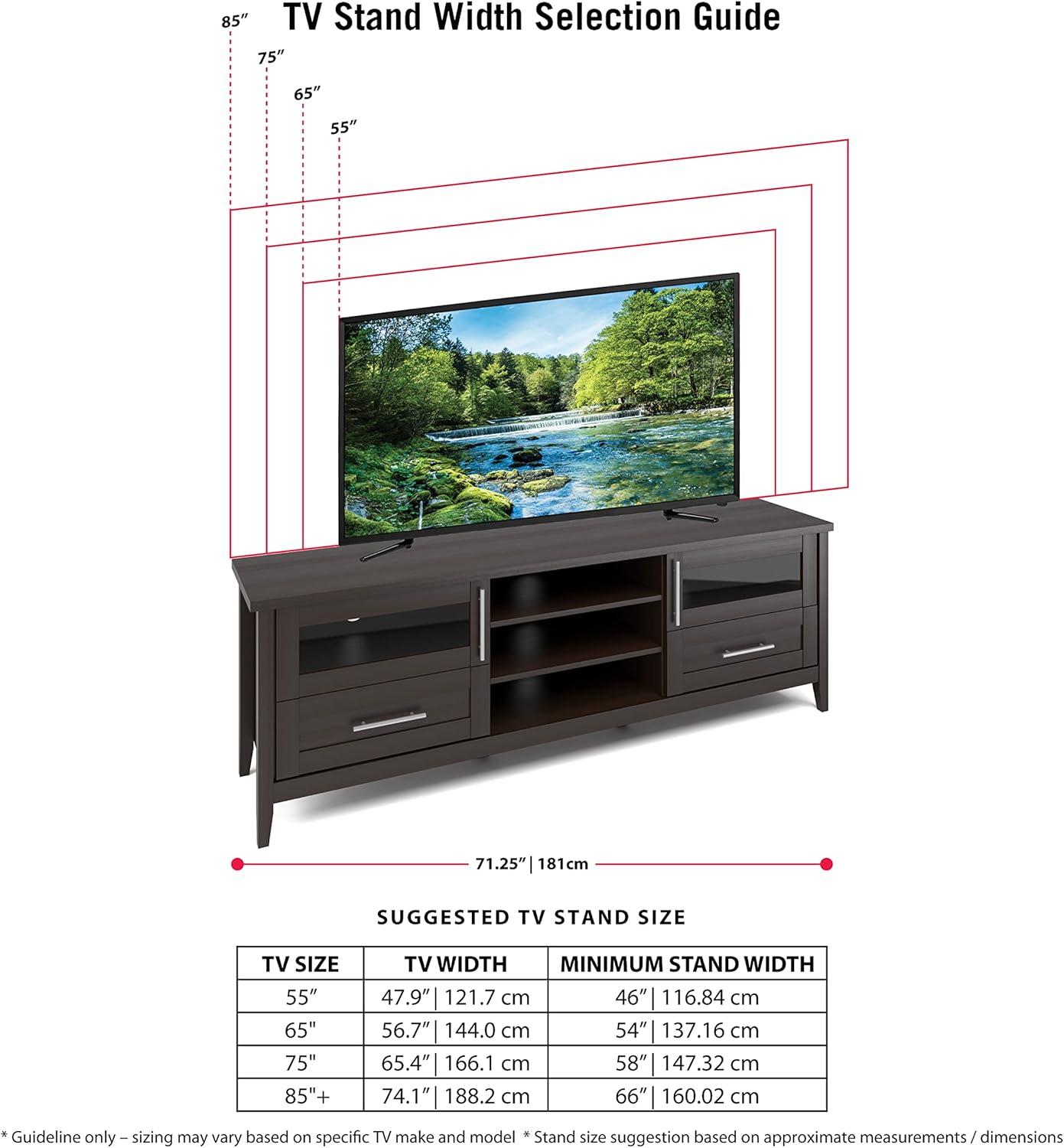 When it comes to placement, the compact yet extra-wide design offers versatility for various room layouts. Its neutral espresso finish,highlighted by imitation nickel handles and glass doors,blends seamlessly into modern or customary interiors. The open shelves and concealed drawers provide flexible storage, perfect for organizing a variety of AV components without clutter. Whether positioned in your living room, media room, or even a spacious hallway, it maintains an elegant presence without overwhelming the space.