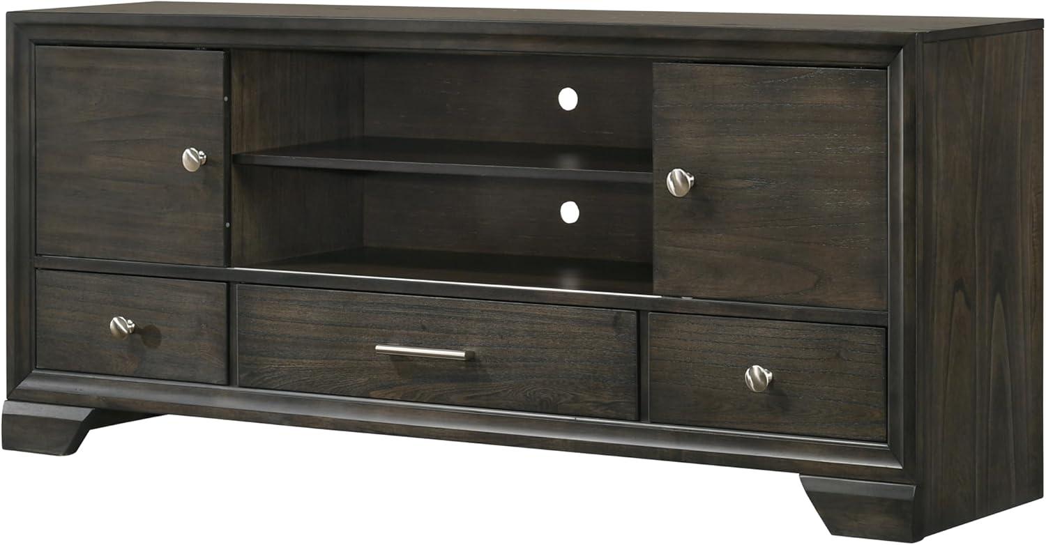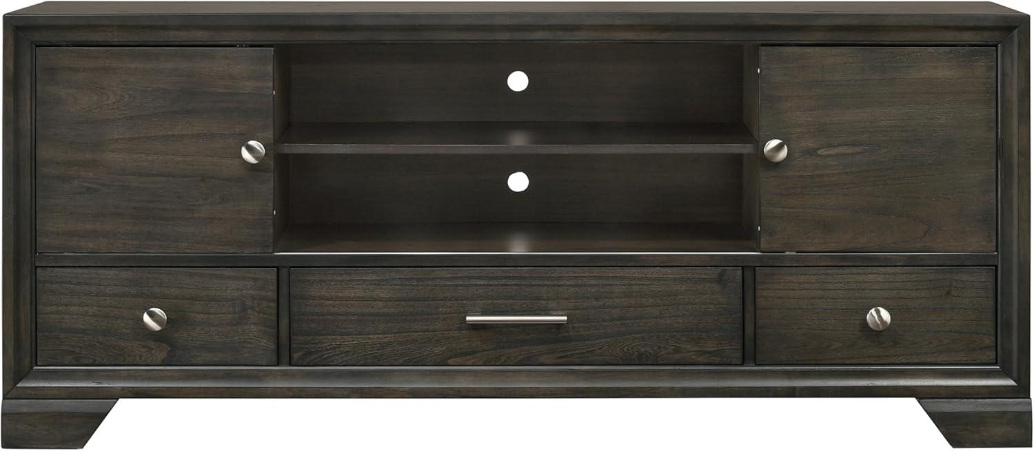 After spending time with this TV stand, we appreciate how effortlessly it blends practicality with a modern aesthetic. Its dark gray finish is subtle yet sophisticated, making it an excellent match for a variety of interior styles. The combination of two spacious cabinets, three drawers, and open shelving provides a flexible storage solution that helps keep electronic devices, media accessories, and decor neatly organized.The integrated cord management system is a standout feature, ensuring that cables remain hidden and the overall setup looks clean and clutter-free. Whether in a bustling family room or a cozy bedroom, this piece holds up well, offering both durability and functional design that accommodates a range of television sizes and needs.