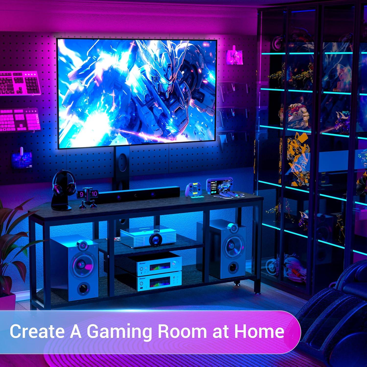 Storage and cable management truly set this stand apart. The open shelving fits books, devices, and décor with ease, and the bottom clearance helps when cleaning with our robot vacuum.The integrated power strip with multiple outlets and USB ports keeps everything powered and organized without a mess of wires.Another standout feature was the mesmerizing RGB LED lighting, which can sync with music or be controlled remotely, adding a personalized ambiance to the room. Installation proved easy thanks to well-marked parts and clear instructions, making this entertainment center both a stylish and practical addition.