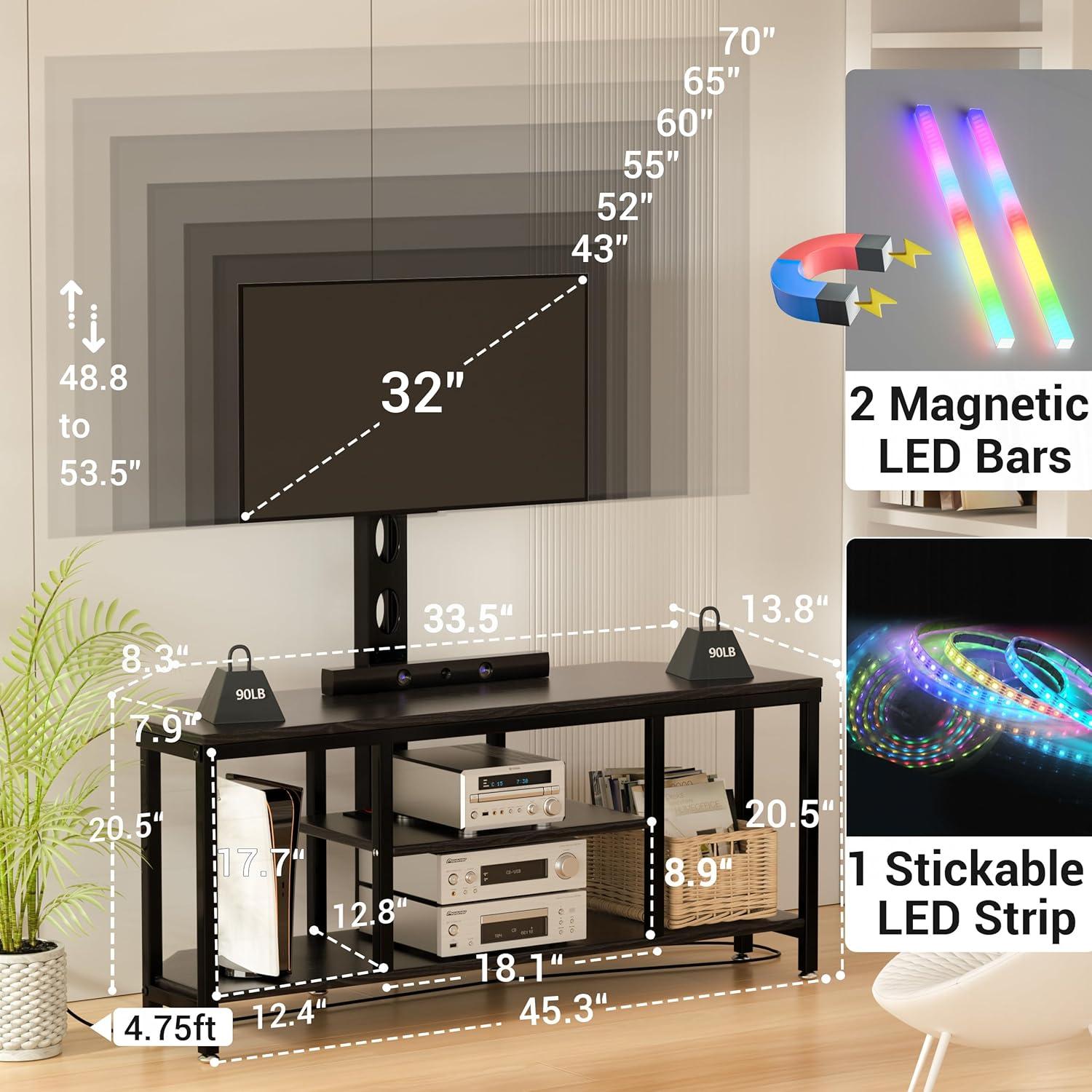 for those living in compact apartments or cozy bedrooms, this corner TV stand offers an ideal solution to maximize space without compromising on style or functionality. Its corner-friendly design fits snugly where a conventional TV stand might overcrowd, turning unused corners into a sleek entertainment hub. The adjustable height and 34° swivel mount provide flexible viewing angles, perfect for shared living rooms or multi-purpose spaces where seating arrangements frequently change. Additionally, the built-in RGB LED lights add a modern touch, creating an ambient atmosphere that transforms any room into an immersive entertainment zone.