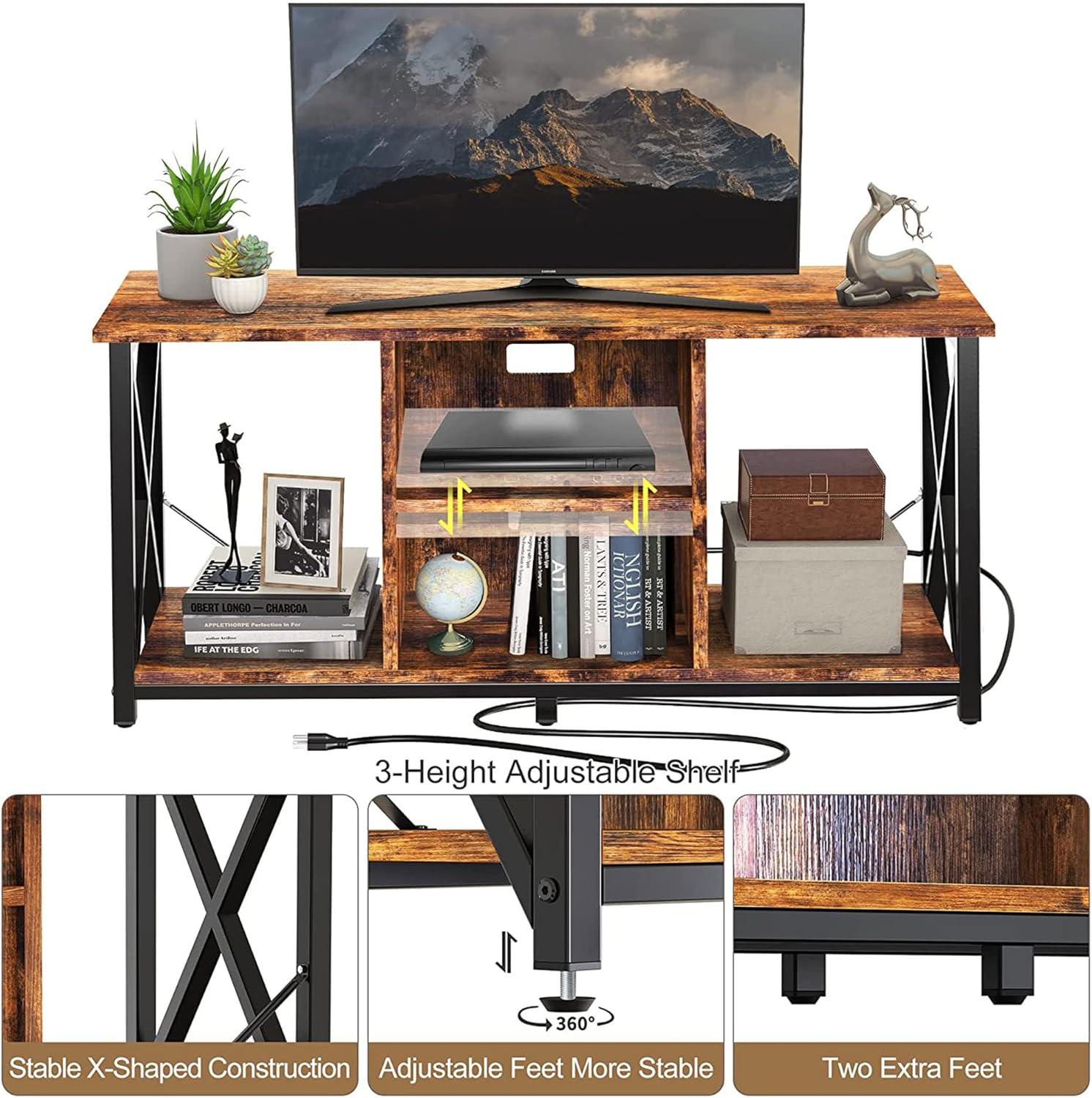 After spending ample time with this entertainment center, we found it to be a solid and practical addition to any living or media room. Its sturdy build impressed us, comfortably supporting equipment without any wobbling, thanks in part to the adjustable feet which help stabilize it even on uneven floors. The integrated power strip with four sockets is a thoughtful feature that minimizes visible cables and keeps our devices neatly powered. We also appreciated the three-height adjustable shelf, allowing flexible storage configurations that accommodate different media setups.