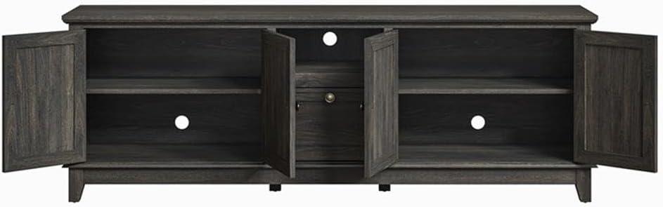 Beyond aesthetics, this entertainment piece is tailored for practical use, designed to support flat-panel TVs up to 75 inches in size. Thoughtful touches like built-in cable management promote a clean and organized setup, ensuring wires stay tucked away for a neat appearance. The overall dimensions-25 inches high, 72 inches wide, and 15.5 inches deep-strike a balance between offering plenty of surface area and fitting comfortably into most rooms. Whether your style leans toward farmhouse rustic or transitional modern, this stand delivers a sophisticated yet functional foundation for your media needs.