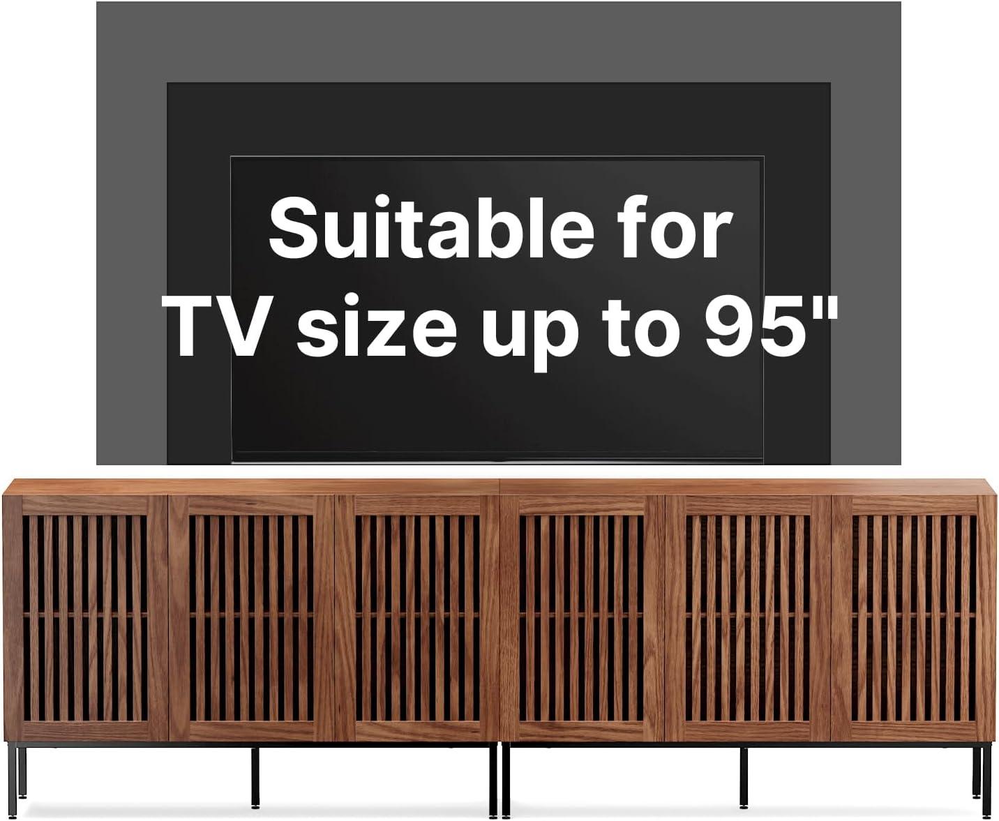 | Notable Size & Capacity: Supports TVs up to 100 inches and holds up to 300 pounds with ease. | Large Footprint: Its near-8-foot width demands ample living room space – not ideal for cozy corners. |