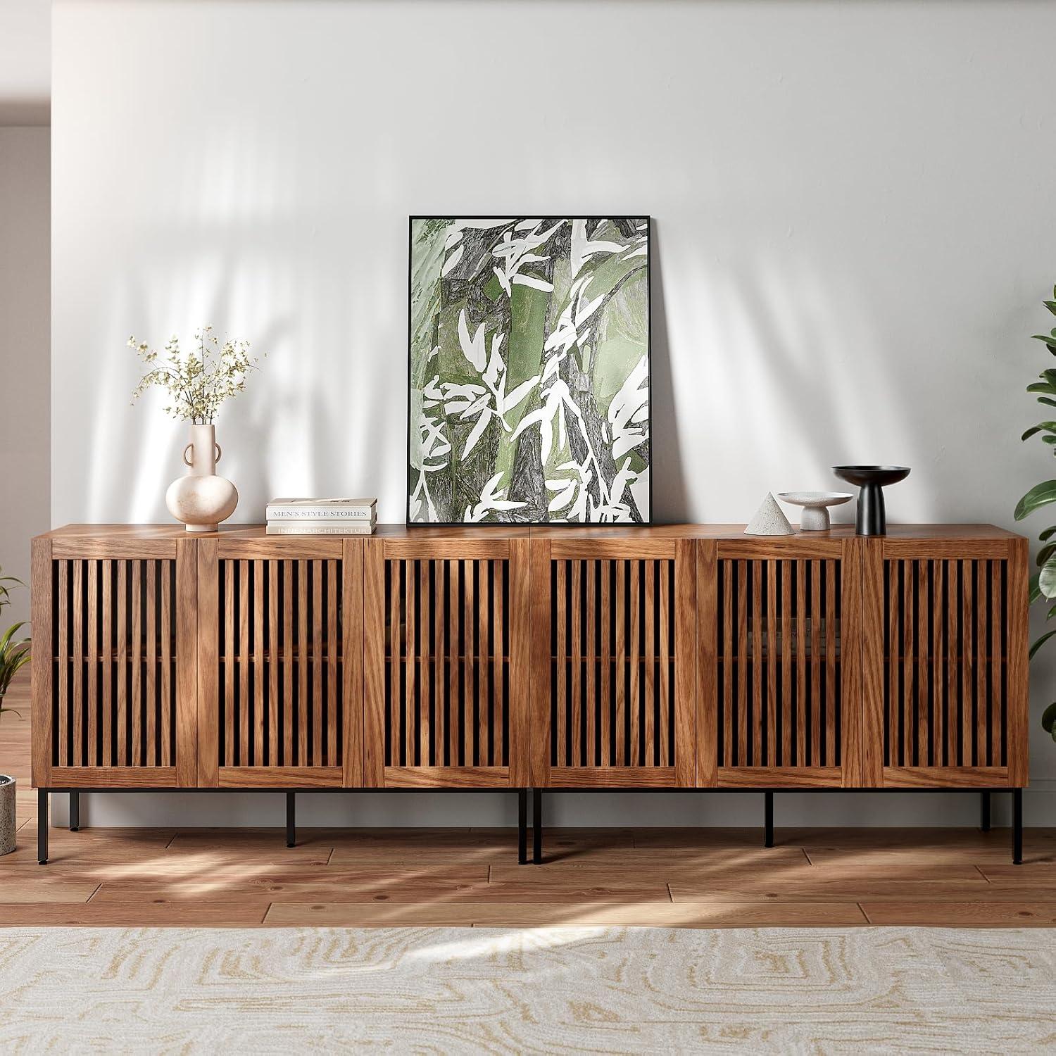 Designed for versatility, it’s thoughtfully crafted to meet multiple needs across various rooms. From the spacious storage cabinets with detachable shelves to the anti-tipping safety feature, every aspect focuses on institution and security. This multi-functional piece works wonderfully as an entertainment center or a storage cabinet in dining or living rooms alike, offering ample room to house electronics, décor, and essentials while maintaining a warm, inviting atmosphere.