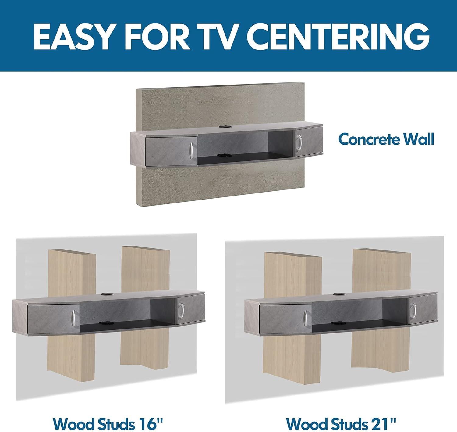 Our experience with this floating wall-mounted unit highlights its excellent adaptability to TVs up to 50 inches, making it a great fit for medium-sized setups. The weight capacity of 55 lbs ensures stability for most modern flat-screen TVs, though it’s critically important to remember that the shelf itself is designed for storage beneath the TV and not to support the TV directly. Its dimensions-43.3 inches wide by 11.8 inches deep and just under 7 inches high-make it especially suitable for living rooms and bedrooms with limited floor space. It fits well under TVs mounted on standard wooden stud walls (16 to 21 inches apart) and works efficiently in rooms where walls are drywall, plaster, or solid material. However, it’s not compatible with cavity or gypsum board walls, which coudl limit options in some layouts.