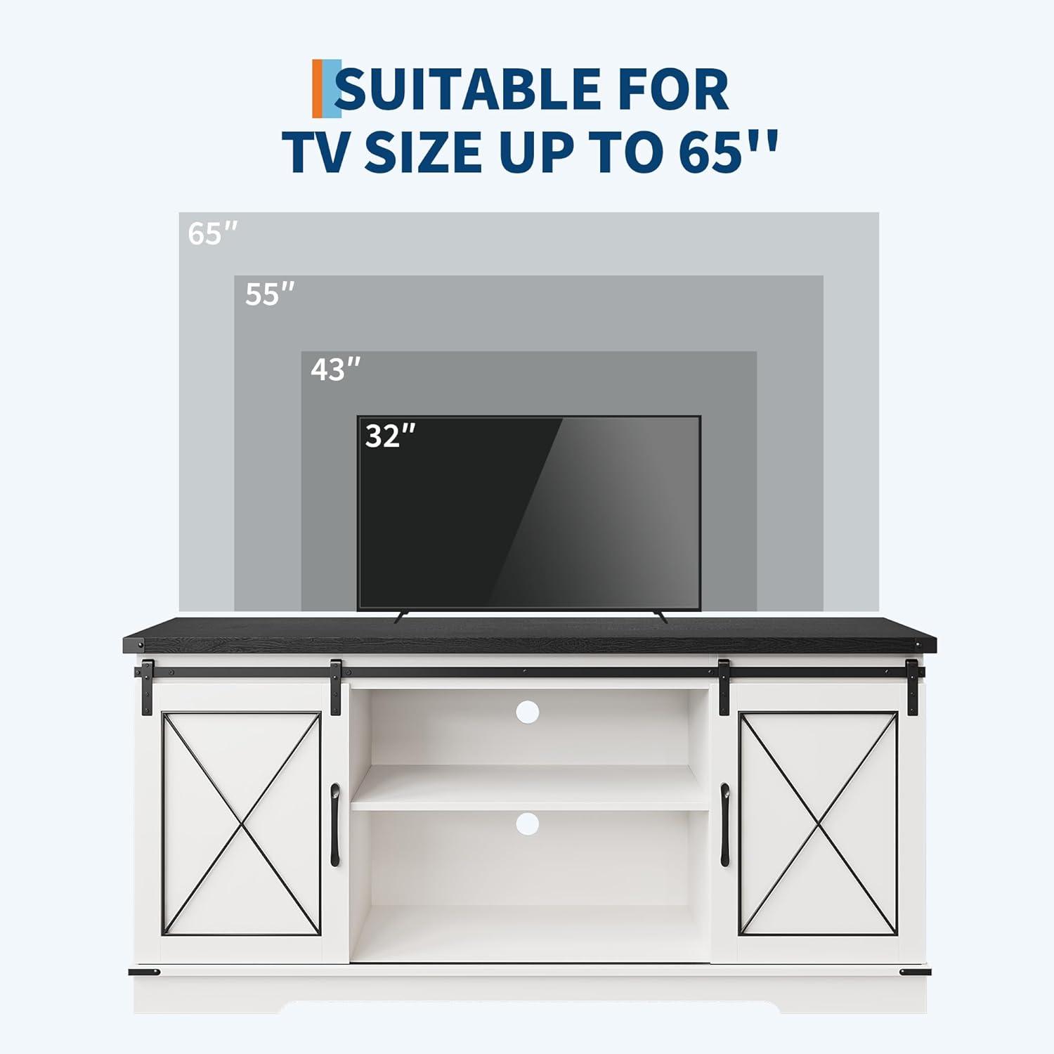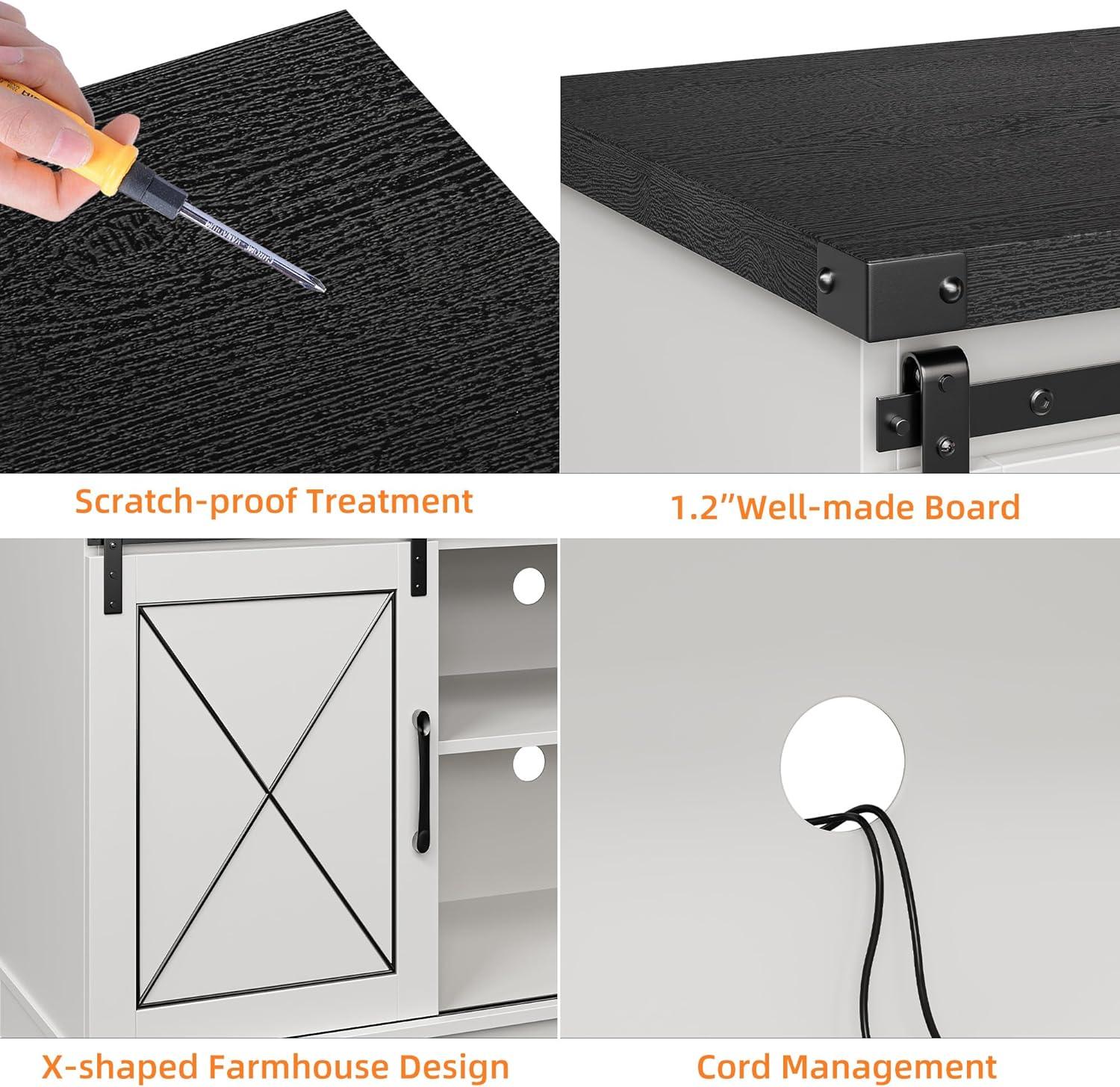 From the moment we started assembling this entertainment center, it was clear that durability and sturdiness were top priorities in its design. constructed with high-quality wood composite materials, the frame feels solid and reliable, providing excellent support for televisions up to 65 inches.The white and black finish does more than just look chic; it’s smooth and resilient, resistant to minor scratches and everyday wear. The sliding barn doors glide effortlessly on their rails, demonstrating precise craftsmanship and quality hardware that won’t wear out or jam easily over time.