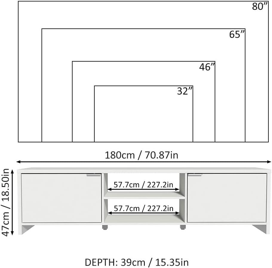 Upon first handling this console, we promptly noticed its extraordinary size and solid construction, making it an excellent centerpiece for spacious living rooms. With dimensions measuring 19 inches in height, 15 inches in depth, and a generous 71 inches in length, it comfortably accommodates large TVs up to 75 inches, along with other entertainment essentials. The clean white finish paired with sleek metallic handles gives it a modern yet timeless aesthetic that blends seamlessly with various decor styles. The inclusion of open shelves designed with cable management in mind was especially thoughtful, making it easier to keep wires organized and out of sight.