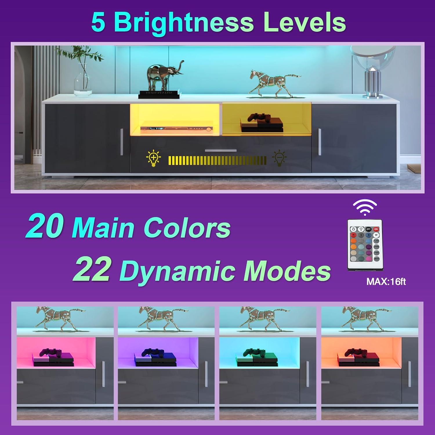Not only does the lighting create an inviting ambiance, but it also complements the sleek mirrored gray finish with glossy accents, amplifying the modern and minimalist aesthetic.This fusion of style and function means that even when the TV is off,the entertainment center remains a standout feature of the room. The LED illumination also helps in reducing eye strain during late-night viewing by providing balanced background light. Below is a quick summary of the LED features and their benefits we noticed during our review: