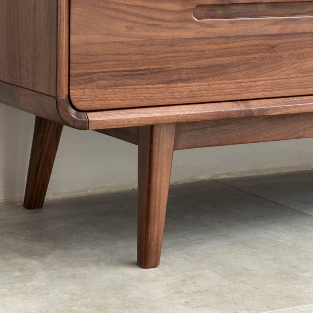 Blending modern elegance with vintage charm, this media center is a versatile piece that brings both style and function to any room. Crafted from durable black walnut, it offers ample storage with four spacious drawers and open shelves, perfect for organizing everything from DVDs and routers to books and audio equipment.The thoughtful inclusion of cable management holes ensures your entertainment area stays neat and clutter-free, while the sturdy wooden base protects your floors and makes cleaning hassle-free. Whether placed in a living room, bedroom, study, or hallway, this console adapts seamlessly to your decor, adding a subtle touch of glamor.