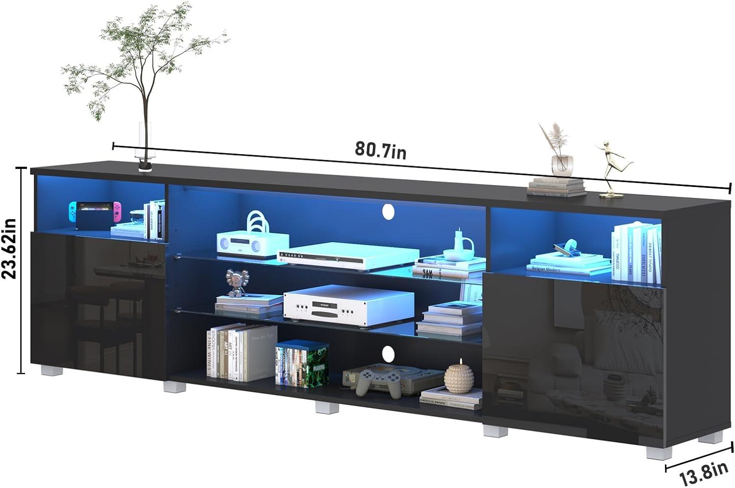 Our experience with this entertainment center has been largely positive, especially in terms of its blend of style and functionality. The high gloss finish combined with matte textured surfaces adds a sleek, modern vibe that complements various room decors seamlessly. The tempered glass shelves offer a sturdy yet elegant platform, with five adjustable height levels that gave us flexible options to organize gaming consoles, media players, and decorative pieces without clutter.Storage capacity is notable, allowing us to keep the living space tidy and well-arranged at all times.