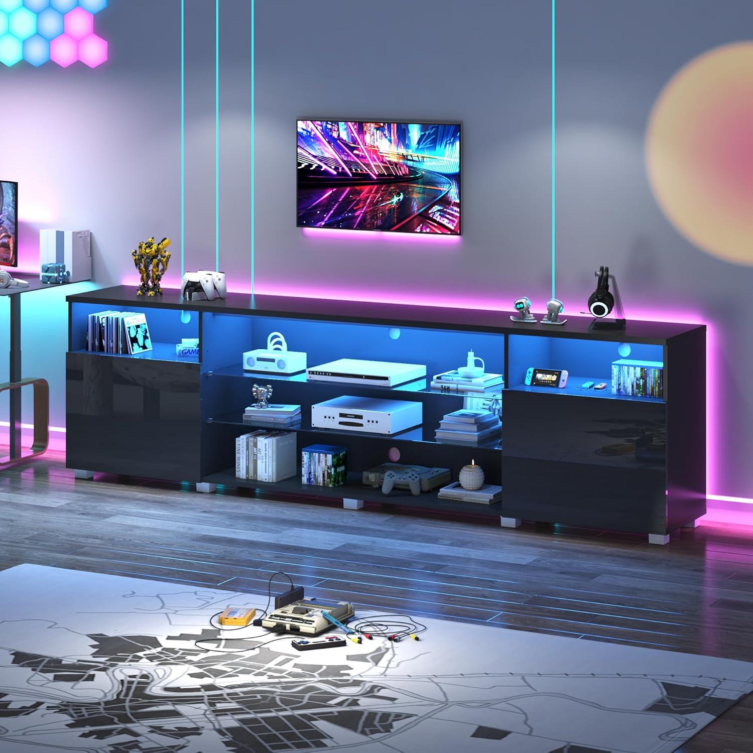 The stand’s sleek high gloss finish paired with a matte texture body gives the furniture a refined, contemporary look that fits right into both our living and game room setups. Its versatile storage options with 5-level adjustable tempered glass shelves allow us to organize gaming consoles,remotes,magazines,and decorative items without clutter. This practical design ensures our space stays neat while highlighting the stand’s aesthetic appeal-more than just a TV stand, it transforms the room’s vibe into something truly special.