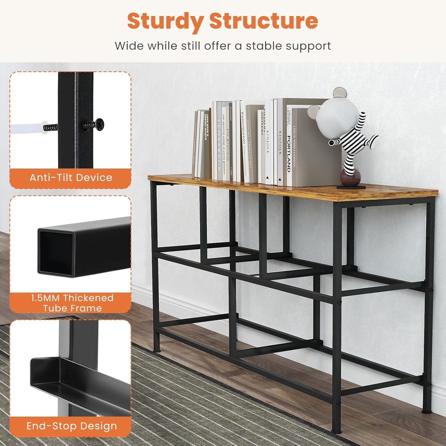 Integrating this console table into our living room has truly optimized the space without overwhelming it.Its lightweight yet sturdy metal frame paired with a wood top provides both durability and an elegant appeal that blends seamlessly with our existing décor. The compact design allows us to place it in narrower areas, transforming an awkward corner into a stylish and functional hub. We especially appreciate the anti-tip features and height-adjustable feet, which ensure stability even on uneven floors, giving us peace of mind while maintaining a polished look.