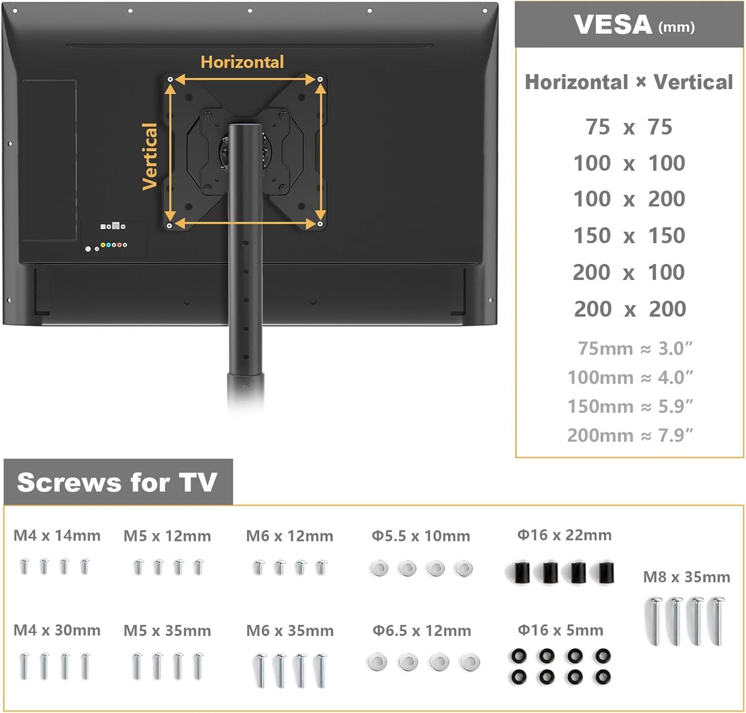 This stand is a great fit for anyone who needs a portable, space-saving solution without sacrificing style or functionality. whether you’re outfitting a dorm room, bedroom, office, or even a trade show booth, the compact footprint and solid steel build provide durability and an elegant presence. It’s perfect if your screen sizes range between 13 and 50 inches and weigh less then 44 lbs, with common VESA mounts up to 200x200mm. Its no-drill assembly is a bonus for renters or those who prefer minimal setup effort.